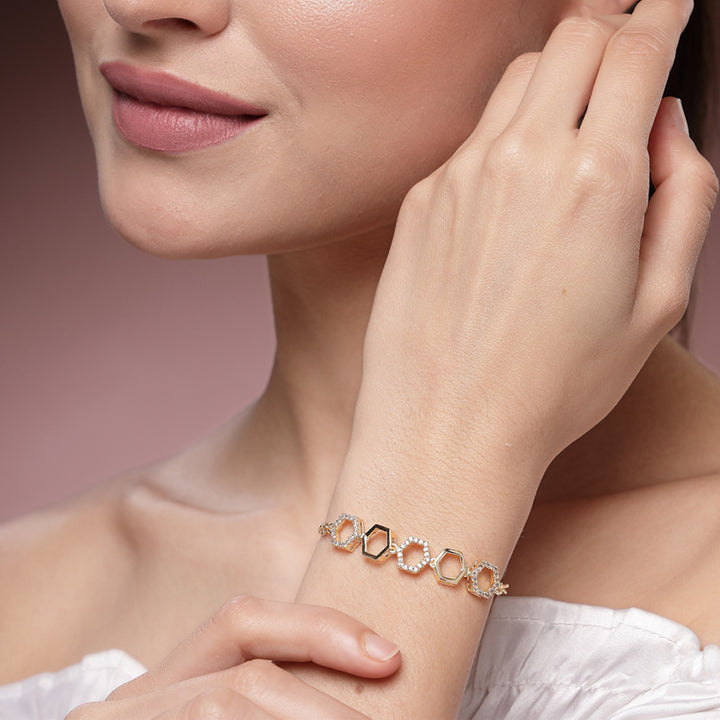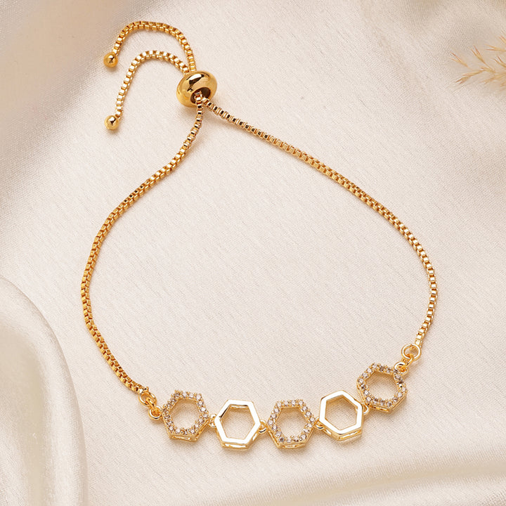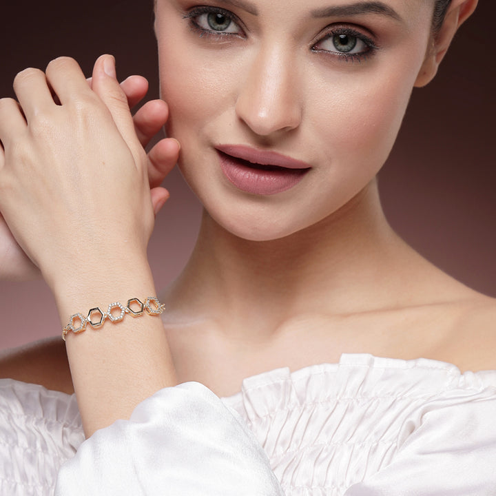 American Diamond Hexagon Chain Bracelet – Exclusive Gold Plated, Lightweight Daily to Party