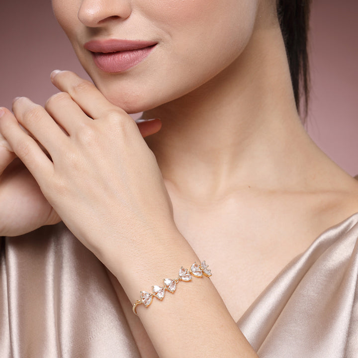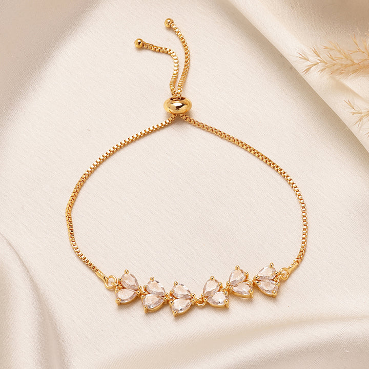 American Diamond Pear-Cut Cluster Chain Bracelet – Gold Plated Lightweight Occasion Wear