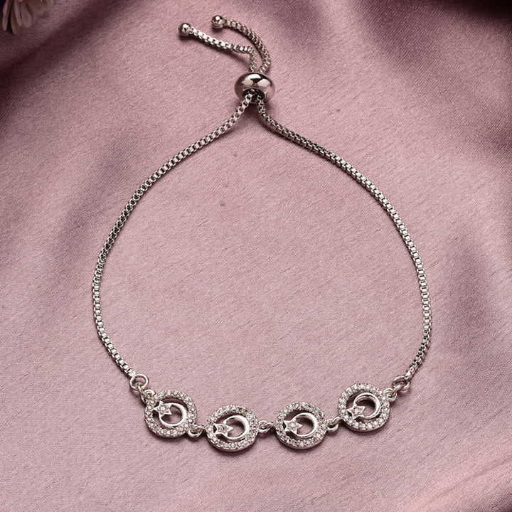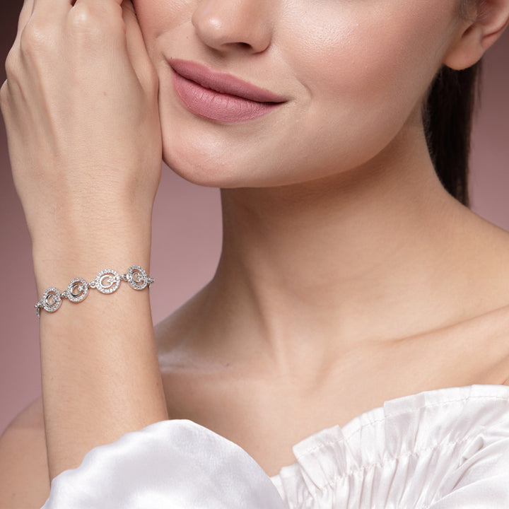 Beautiful American Diamond Round Chain Bracelet – Rhodium Plated, Chic Lightweight Celebration Wear