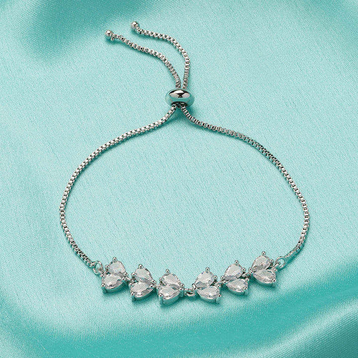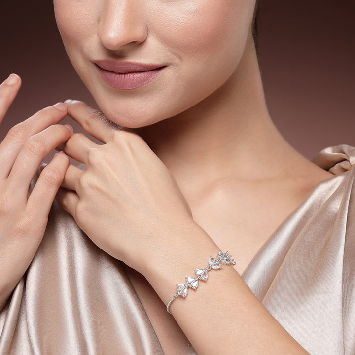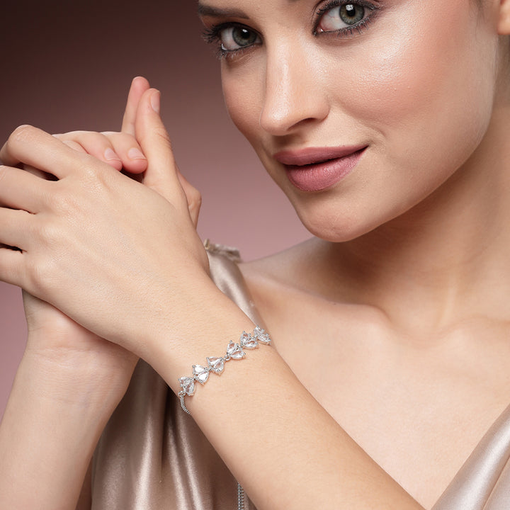 Couture-Inspired American Diamond Pearlet Trio Bracelet – Rhodium Finish, Sleek Lightweight Festive Wear