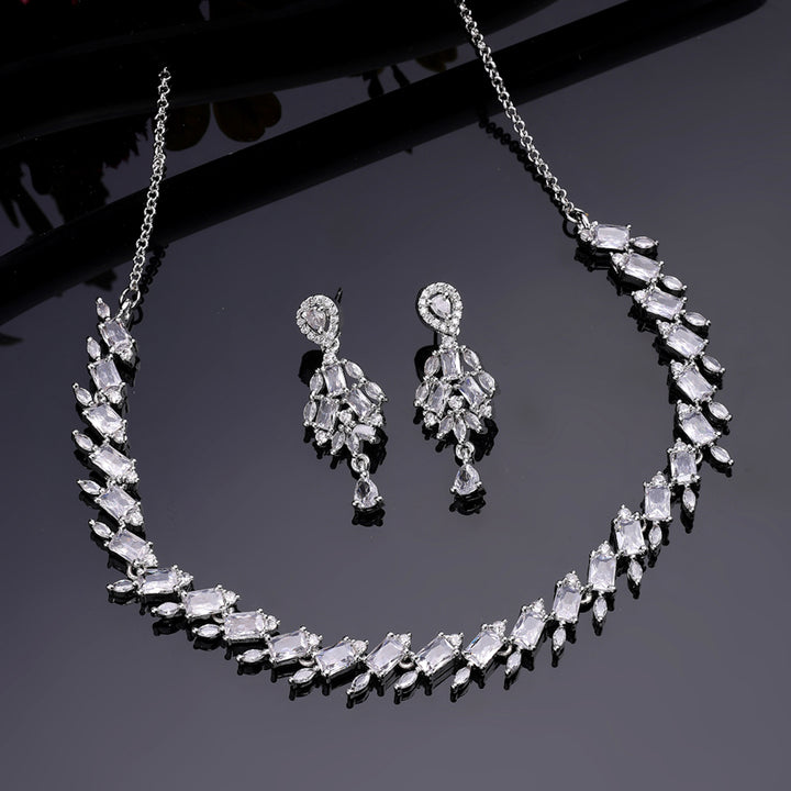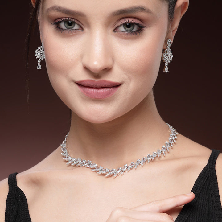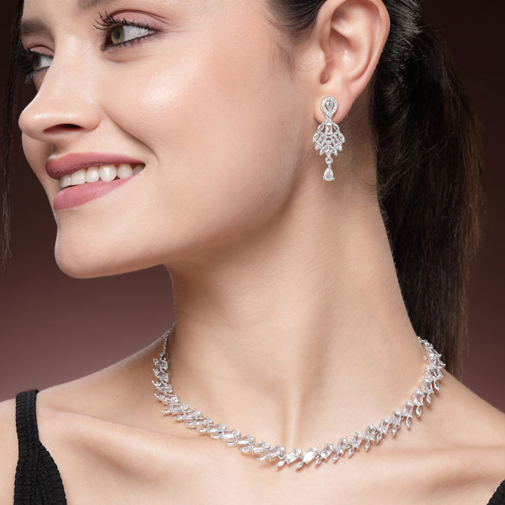 Dazzling Rhodium Plated Premium Cubic Zirconia Necklace Set: Elegant Lightweight Trendy Jewelry for Weddings, Parties & Celebrations