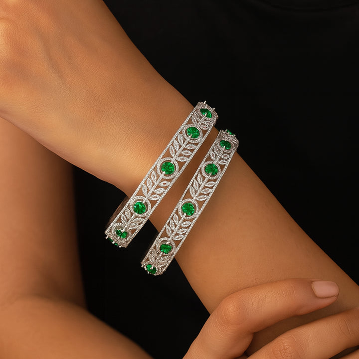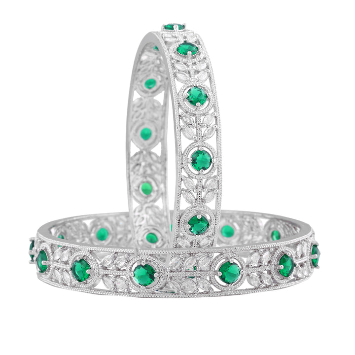 Elegant American Diamond Bangles|Silver Plated|Size 2.6|Wedding & Ethnic Festive Jewelry-OSAK008-IRGN26 BANGLE