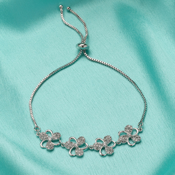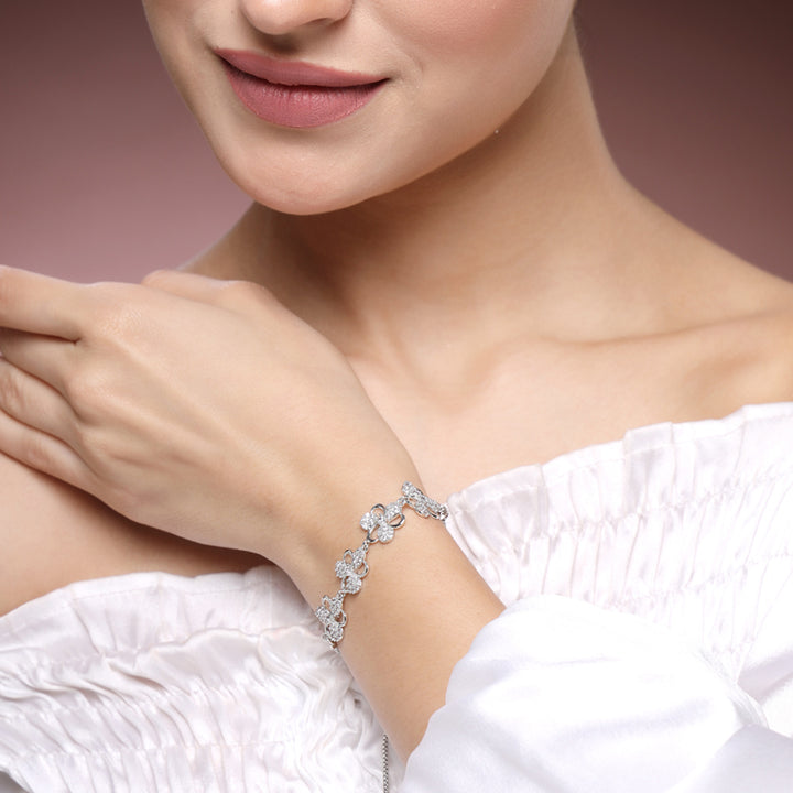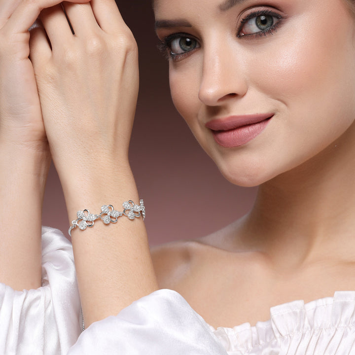Designer Rhodium CZ Adjustable Floral Bracelet – Premium Lightweight Jewelry for Weddings & Festive Occasions