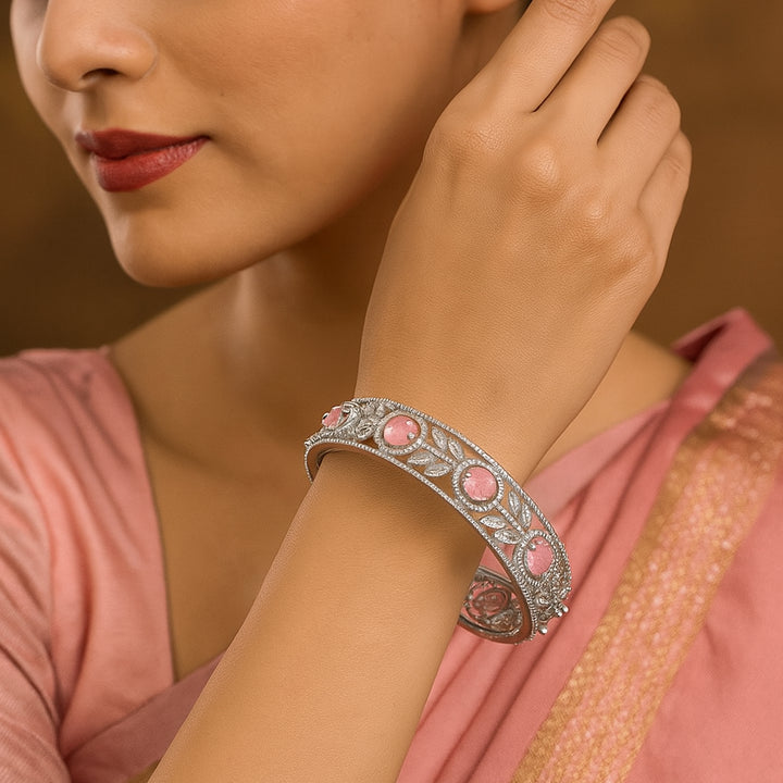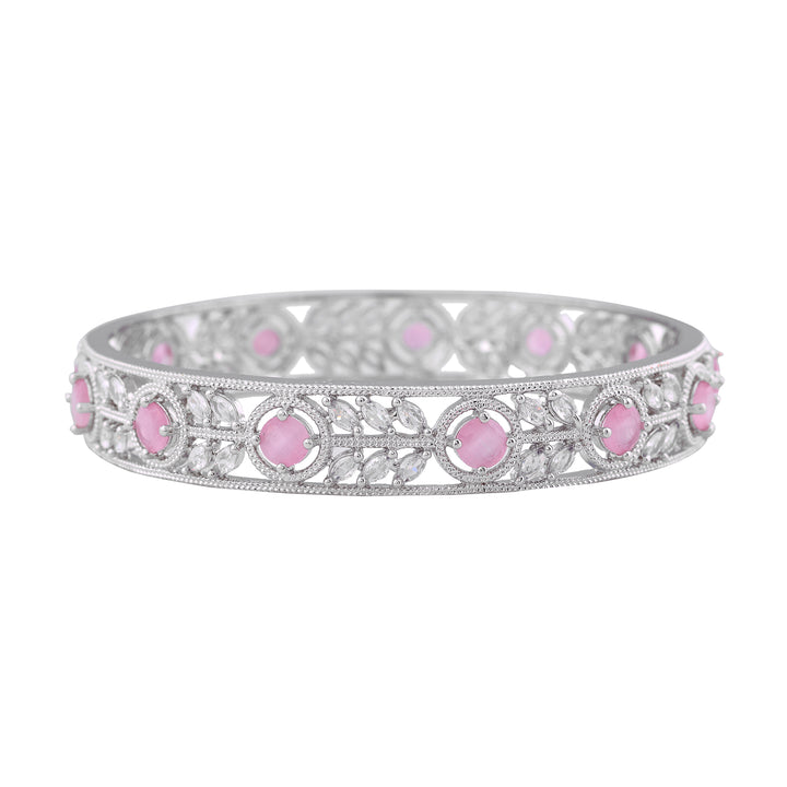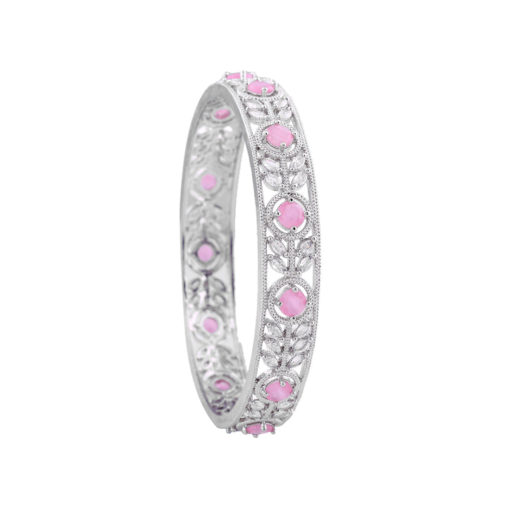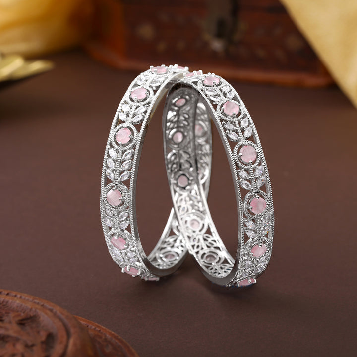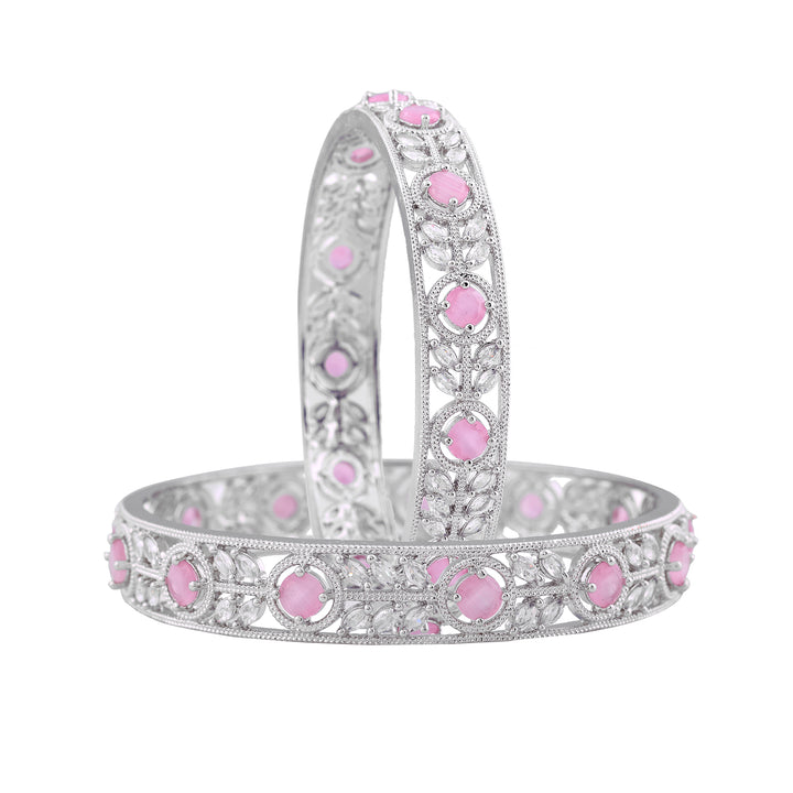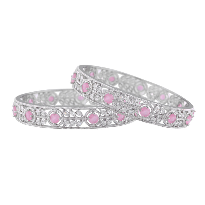 Designer Silver Finish Bangles for Women|Mint Pink CZ Look|Size 2.6|Stylish Festive Jewelry-OSAK008-IRMP26 BANGLE