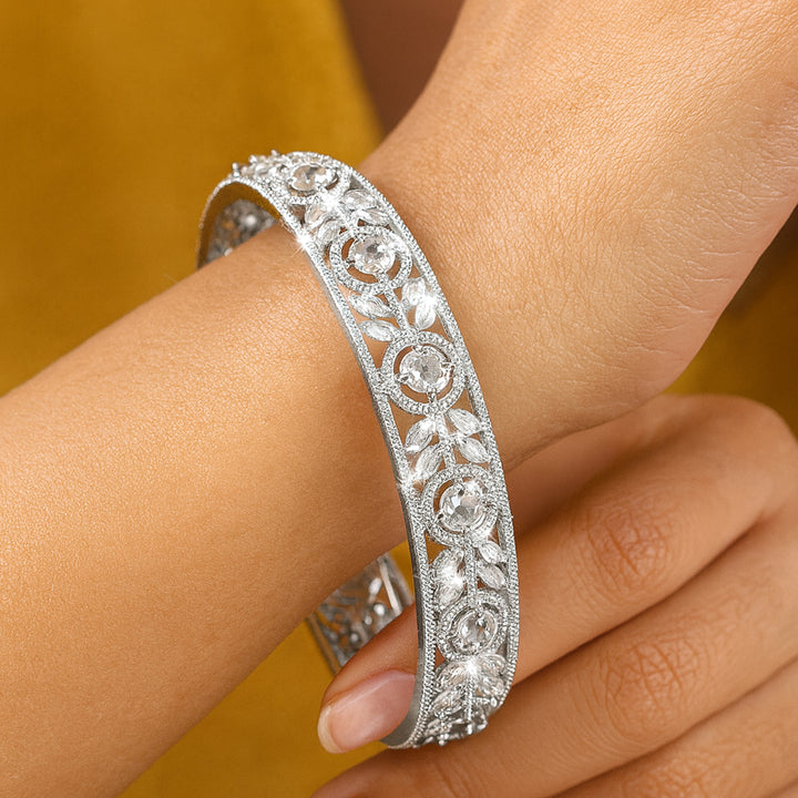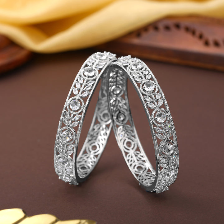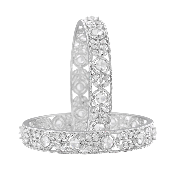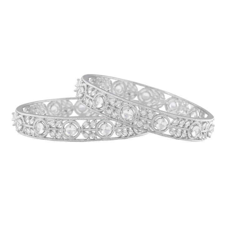 Elegant Silver Finish Bangles|White CZ Look|Size 2.6|Perfect for Wedding & Festive Styling-OSAK008-IRWE26 BANGLE