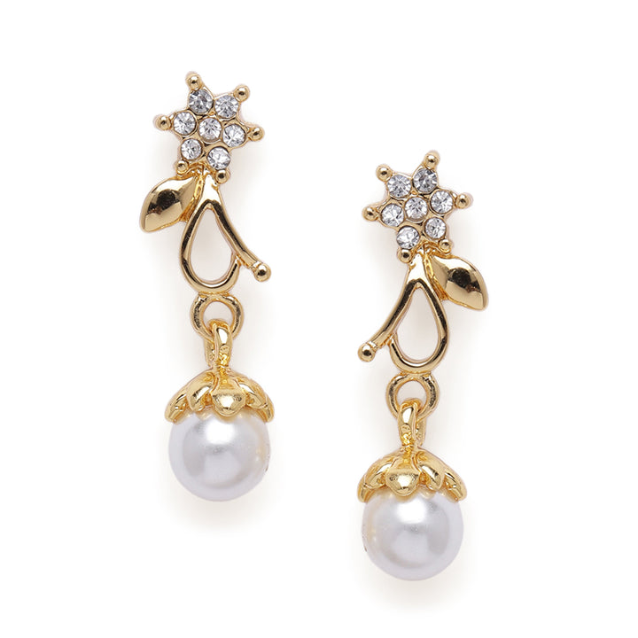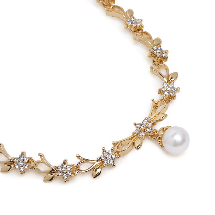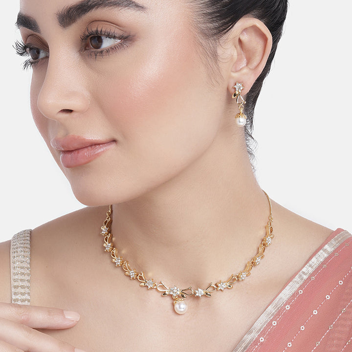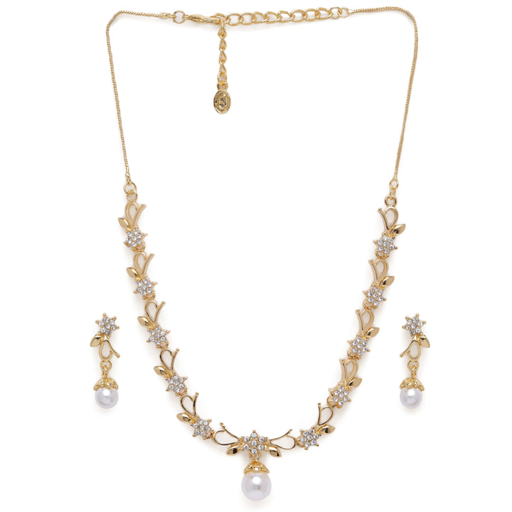 Estele Gold Plated Elegant Blossom Designer Necklace Set with White Crystals & Pearl for Women