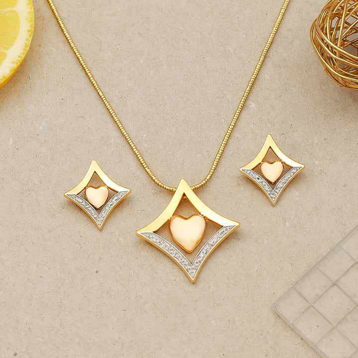 Estele 24 Kt Gold & Rhodium Plated Diamond Heart Chain Pendant Set for Women