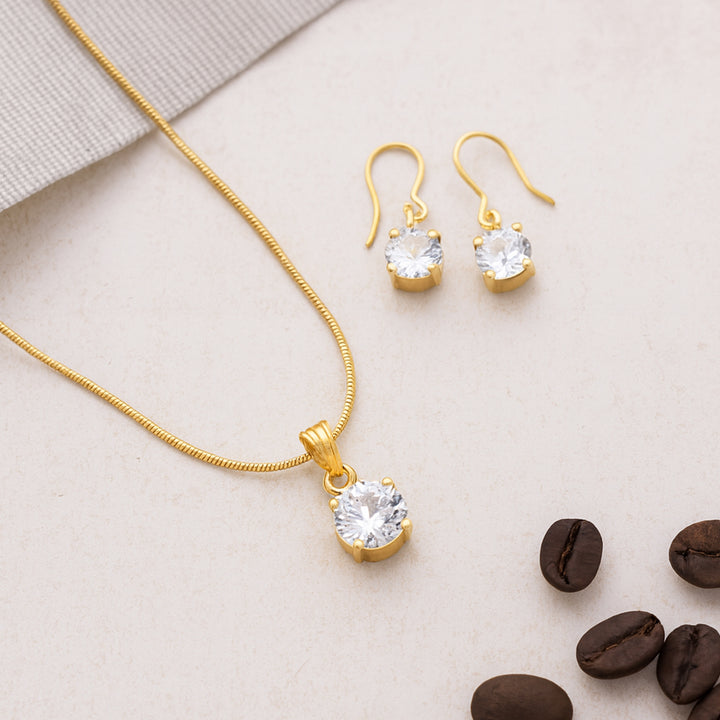 Estele - 24 KT Gold plated square solitaire pendant Set for Women