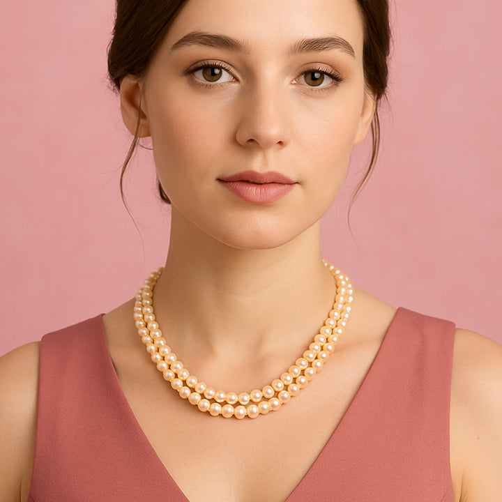 Elevate your jewelry collection with the Double-Line Cream Pearl Necklace, a sophisticated piece that combines classic charm with modern elegance. This exquisite necklace features two graceful strands of creamy, lustrous pearls, meticulously arranged to create a rich, layered effect. The dual lines of pearls offer a refined look, enhancing the necklace's depth and texture while maintaining a timeless appeal. Finished with a secure clasp, the necklace ensures a comfortable fit and effortless wear. Perfect for adding a touch of elegance to both everyday outfits and special occasions, the Double-Line Cream Pearl Necklace is a versatile accessory that embodies sophistication and grace.