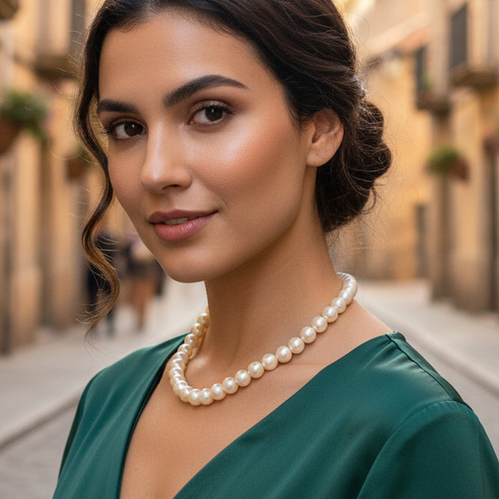 Make a long-lasting impression wherever you go with this sparkling pearl necklace. Add it on to your outfit for the next party to catch all eyes.