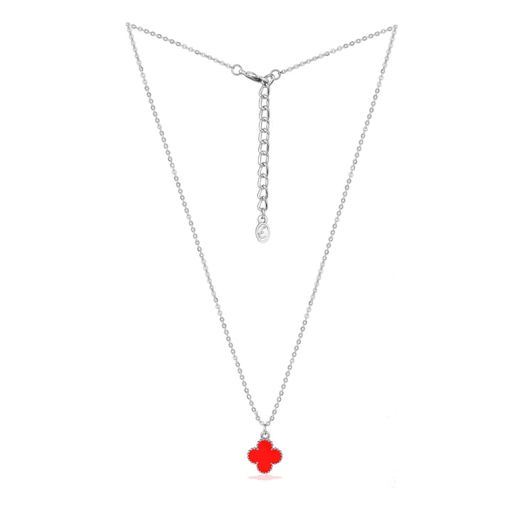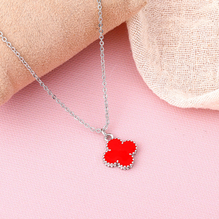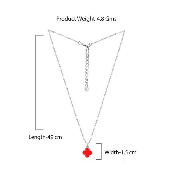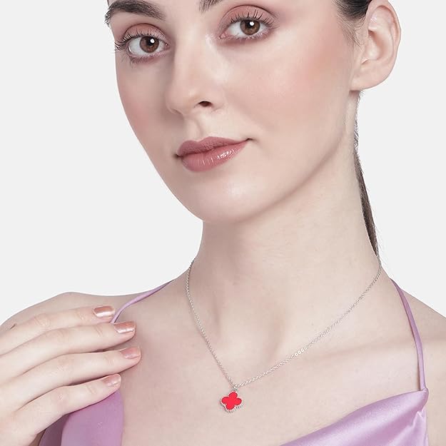 Estele Rhodium Plated Red Four Leafy Designer Pendant Necklace with Adjustable Chain for Women and Girls