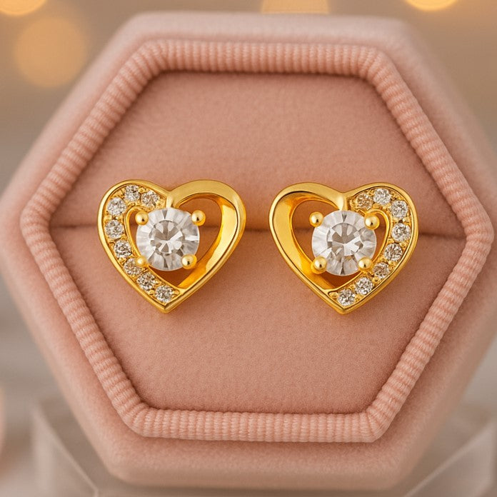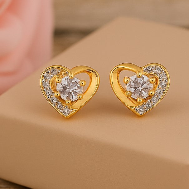 Estele Gold Plated American Diamond Heart Shape D-sire Stud Earrings for women