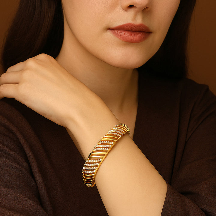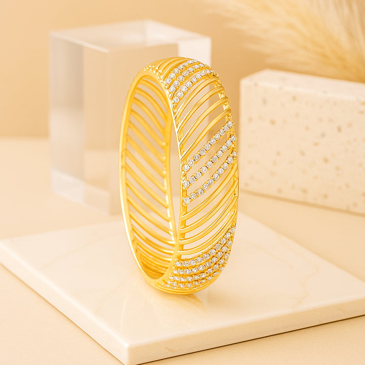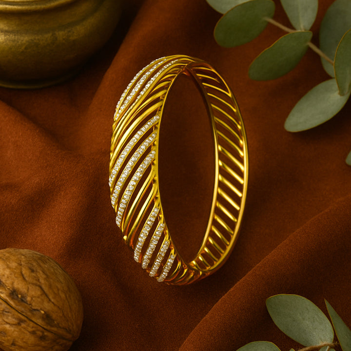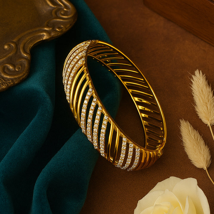 Estele Gold Plated Authentic Traditional 2:4 Size Bangles with White Austrian Crystals for Women| Perfect for Weddings and Festive Celebrations