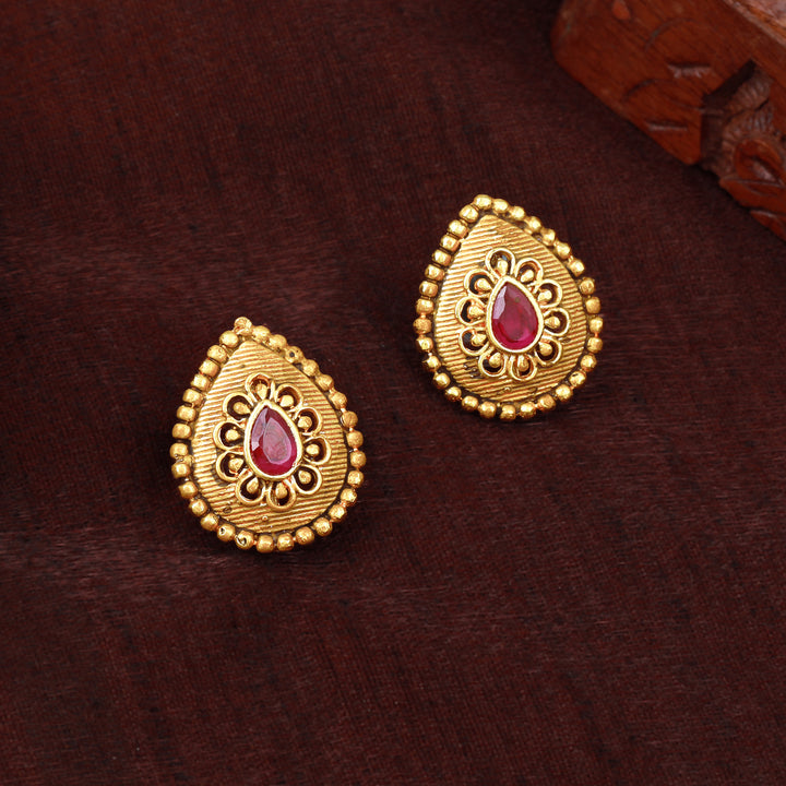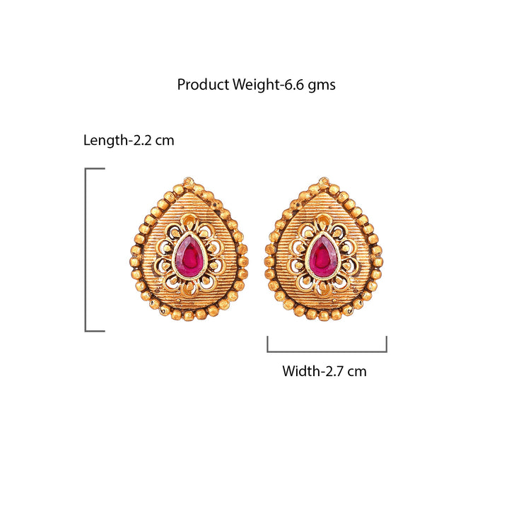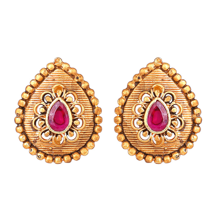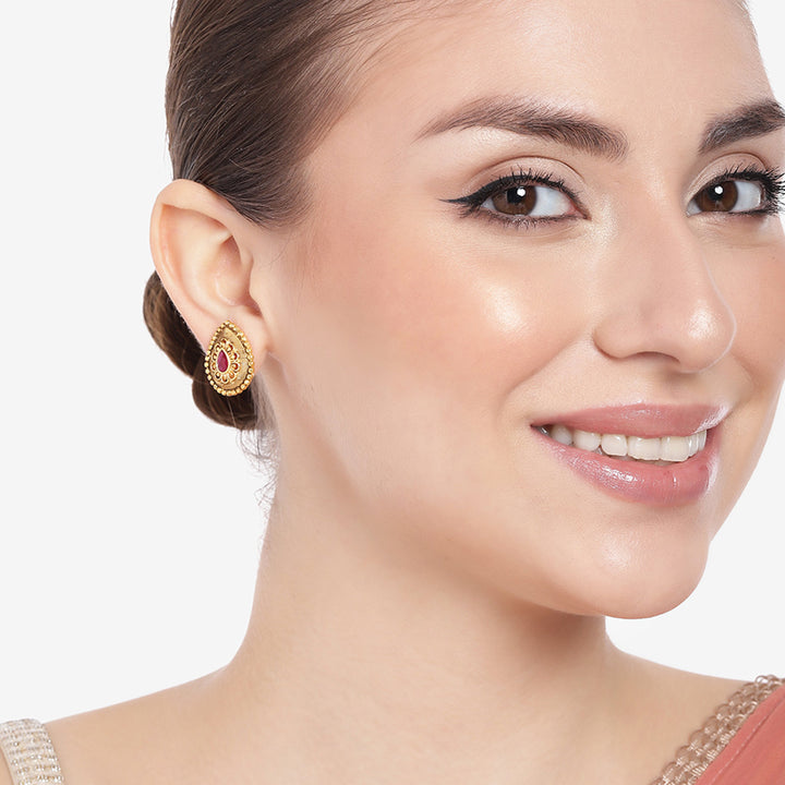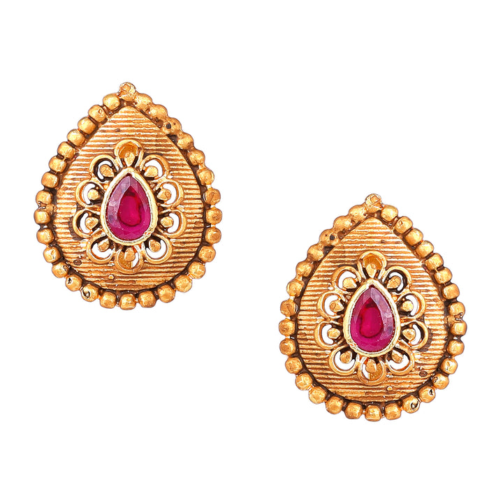 Estele Gold Plated Drop Designer Matte Finish Stud Earrings with Ruby Crystals for Women