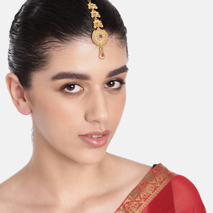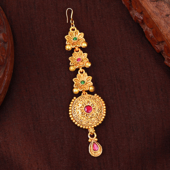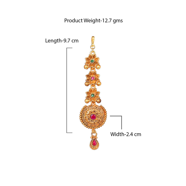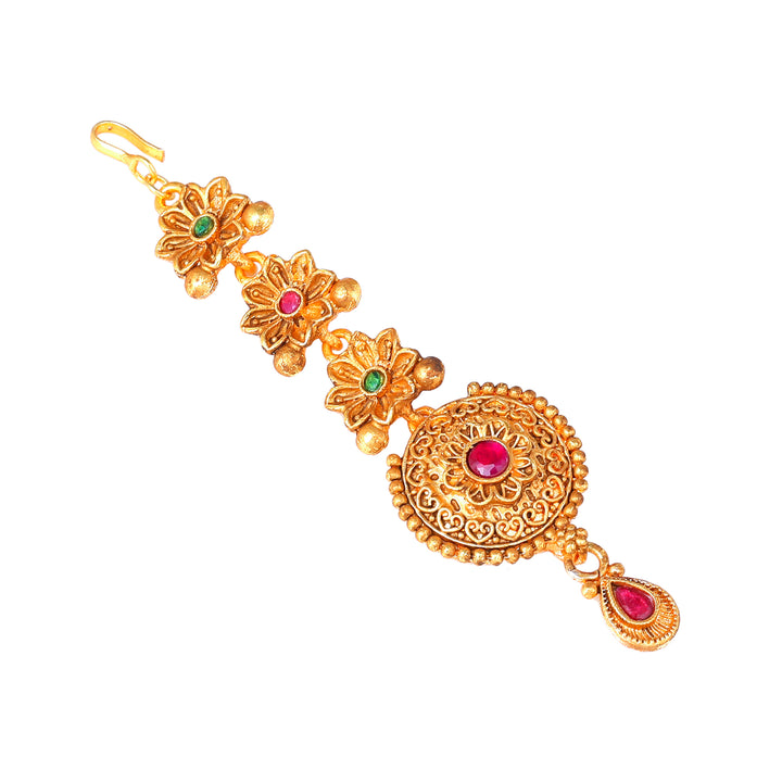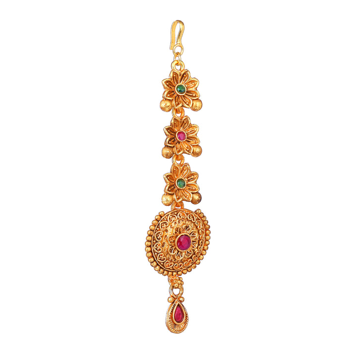 Estele Gold Plated Gorgeous Floral Matt Finish Maang Tikka With Multi-Color Crystals for Women