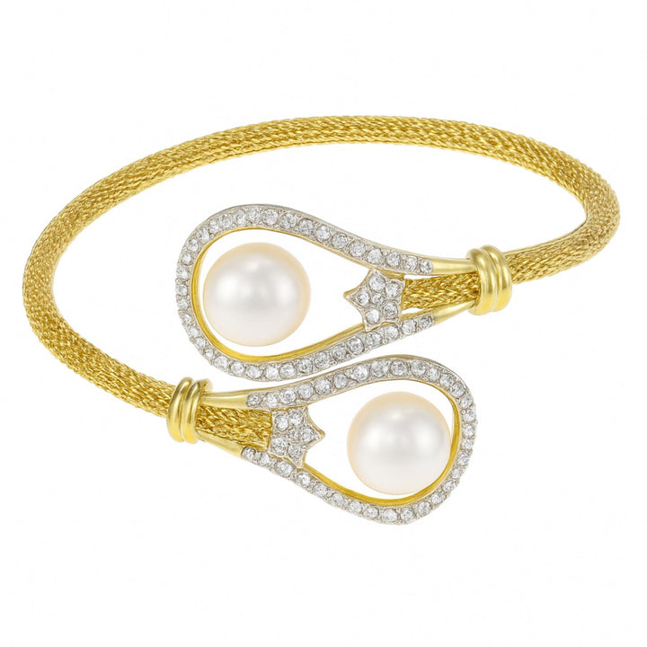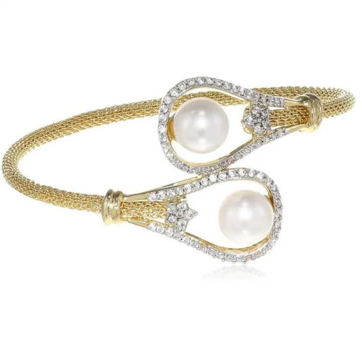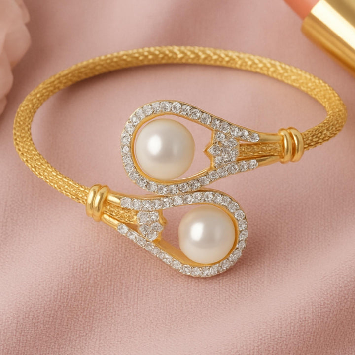 Estele Gold Plated Pearl Drop line Flower Cuff Bracelet for women