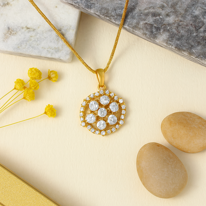 Estele Gold Plated Stylish Floral Pattern Pendant Necklace with White Austrian Crystals for Girls & Women