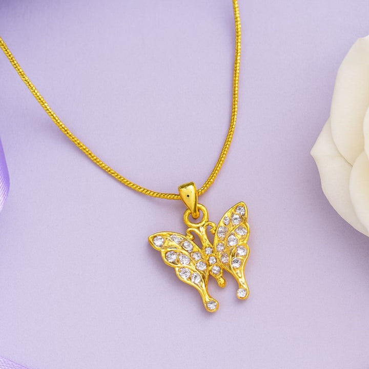 Estele Gold & Rhodium Plated Stunning White Crystals Adorned Pretty Butterfly Pendant Necklace with Chain for Women / Girls