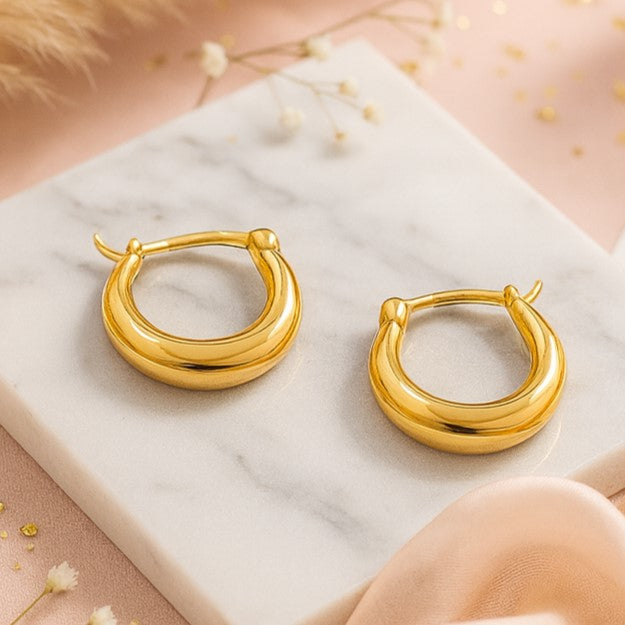 Enhance your elegance with timeless style and captivating design with our Gold Finish Demi-Fine Earrings. Meticulously crafted, these earrings feature mesmerizing details complemented by a radiant gold finish. Their anti-tarnish and waterproof properties ensure lasting beauty and durability. Elevate any outfit with these versatile earrings that effortlessly combine sophistication and dynamic style, making them an essential addition to your jewelry collection.