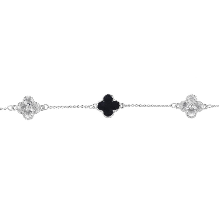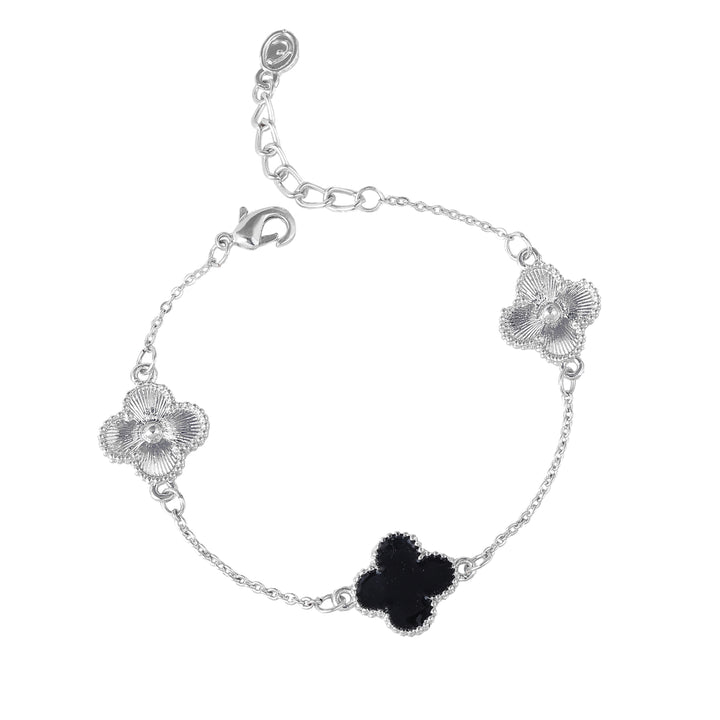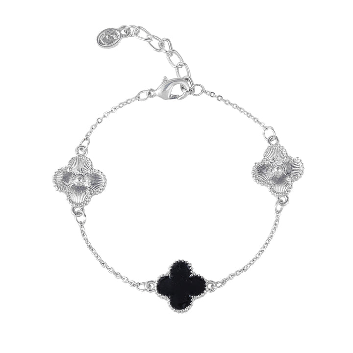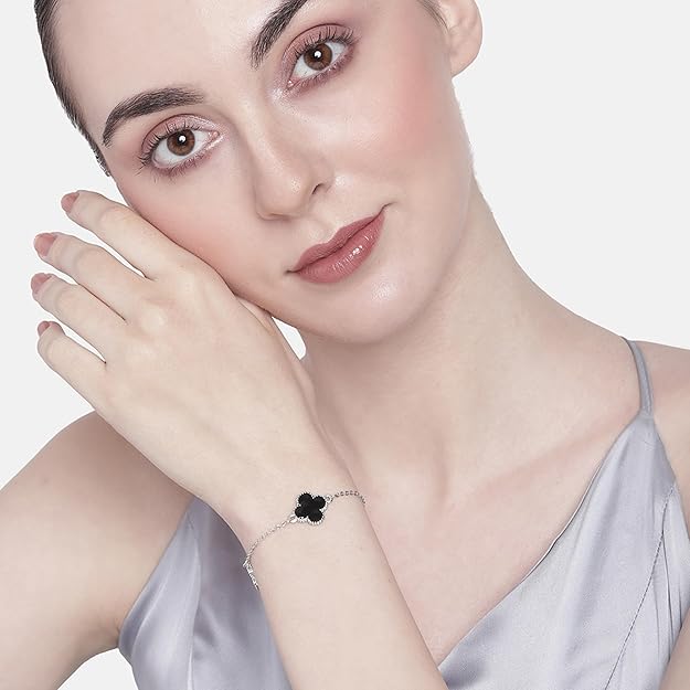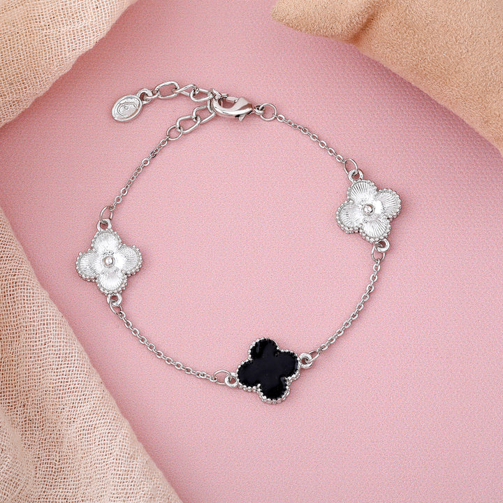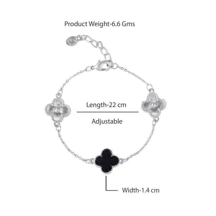 Estele Rhodium Plated Fancy & Stylish Black Clover Leaf Designer Adjustable Charm Bracelet for Girls and Women