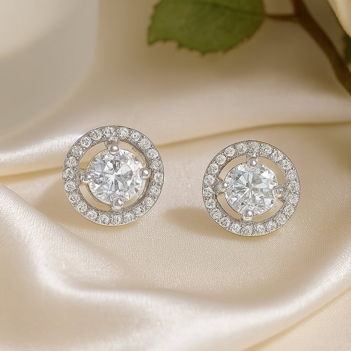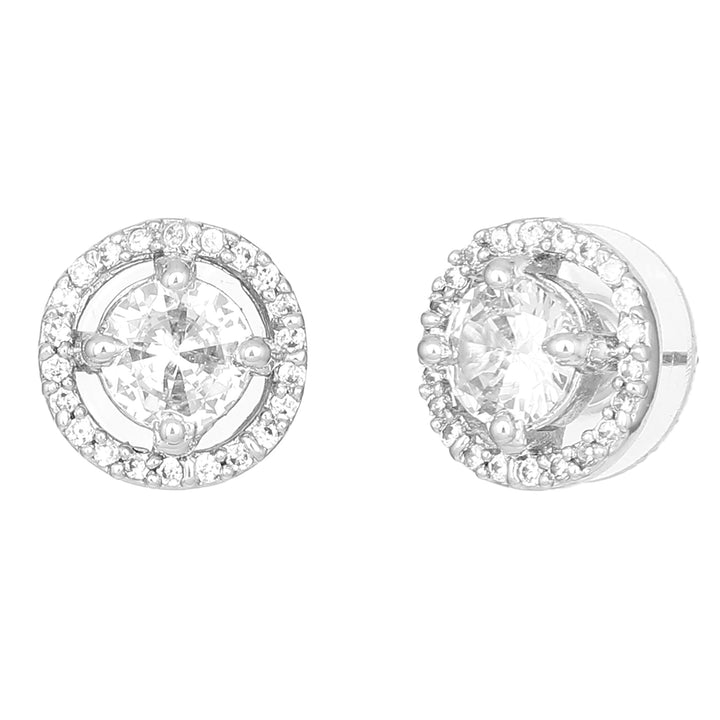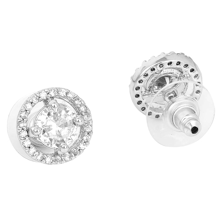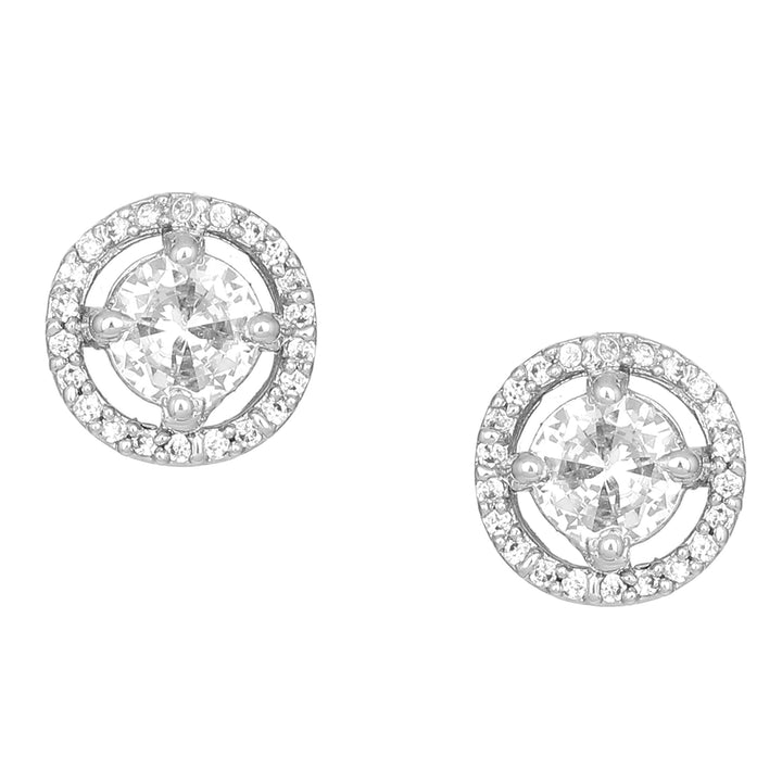 Estele Rhodium Plated CZ Circular Stud Earrings for Women
