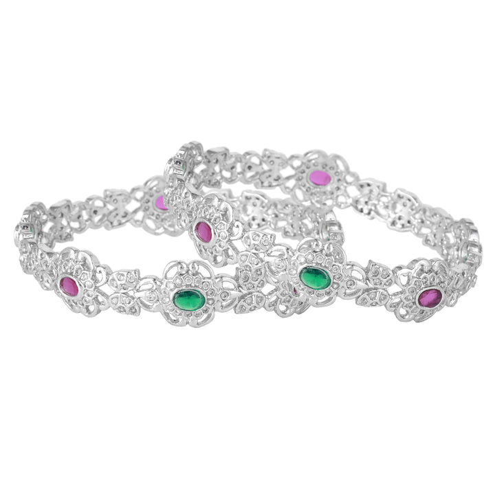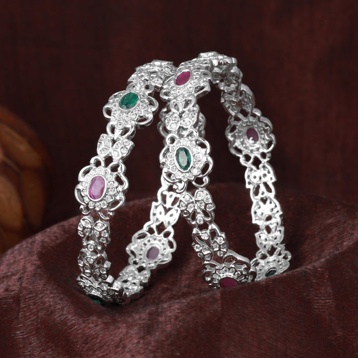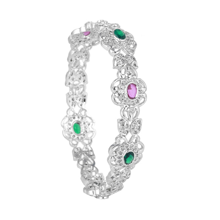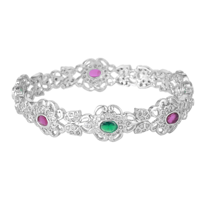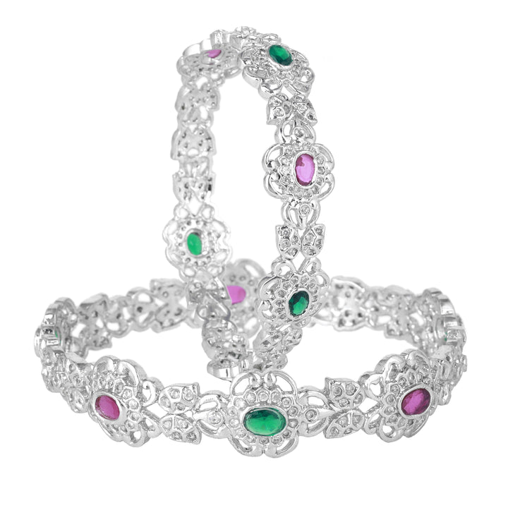 Estele Rhodium Plated Stunning Floral Designer 2:6 Size Bangles with Multi-Color American Diamonds for Women| A Blend of Tradition & Vibrance