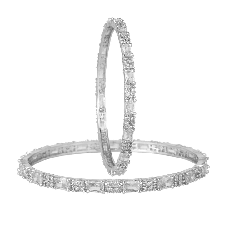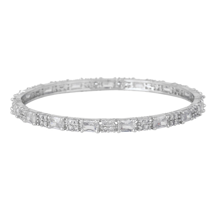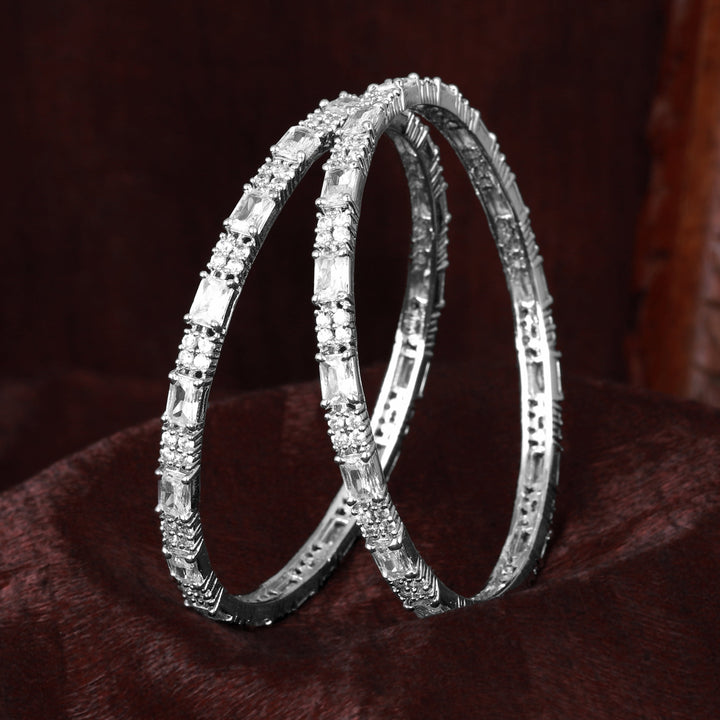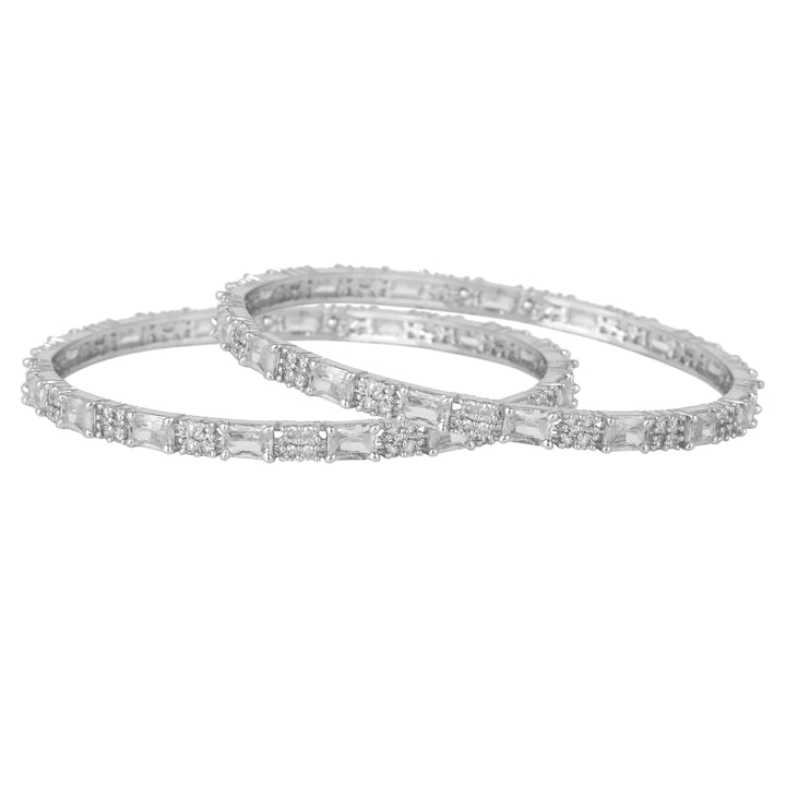 Estele Rhodium Plated Refined White American Diamond Square Pattern Bangles|Available in 2:4, 2:6, & 2:8 Sizes|A Glamorous Look for Women