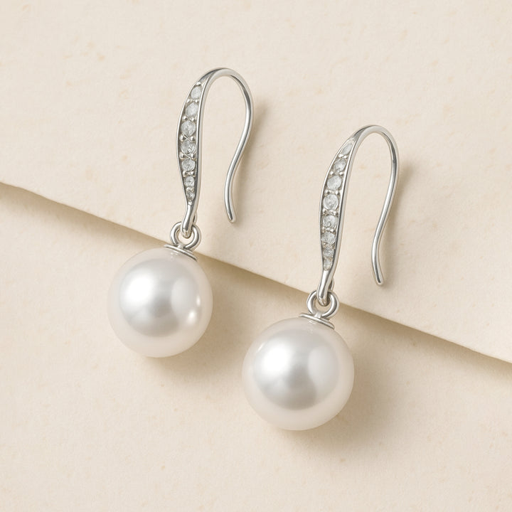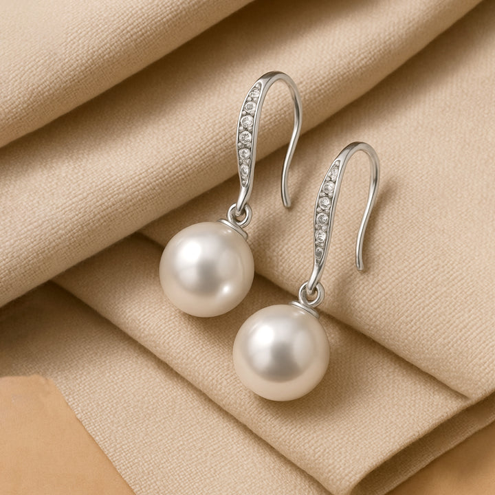 Estele Rhodium Plated Enchanting Pearl Drop Earrings With Crystal for Girls/Women