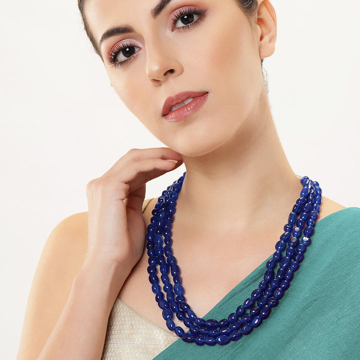 Estele Rhodium Plated Glimmering Designer Three Layered Necklace with Blue Beads for Girls/Women