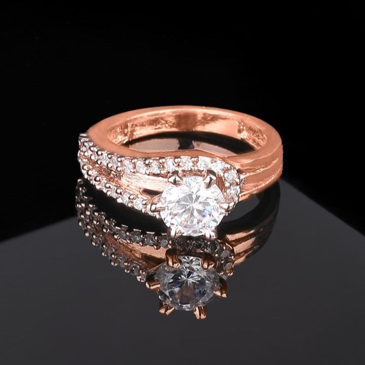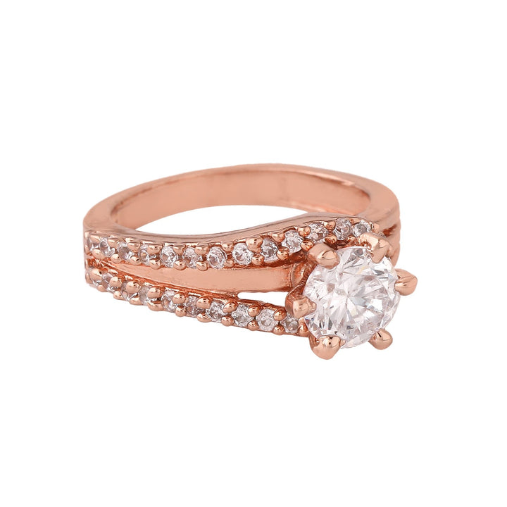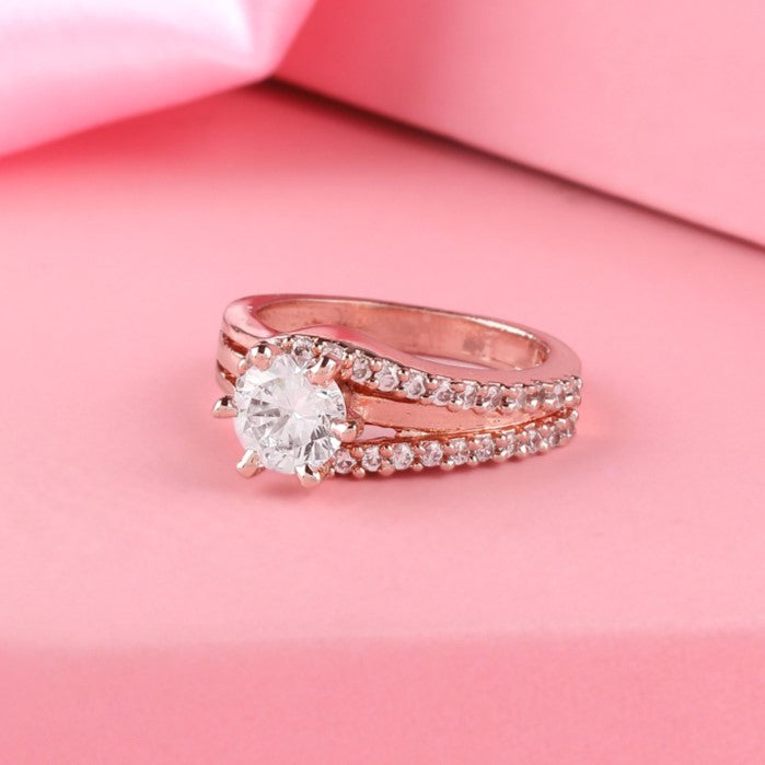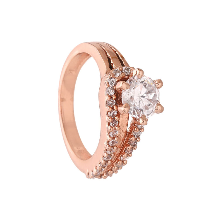 Estele Rosegold Plated CZ Beautiful Solitaire Finger Ring for Women