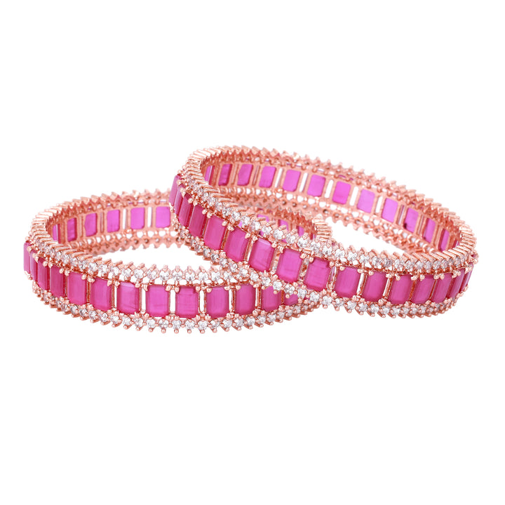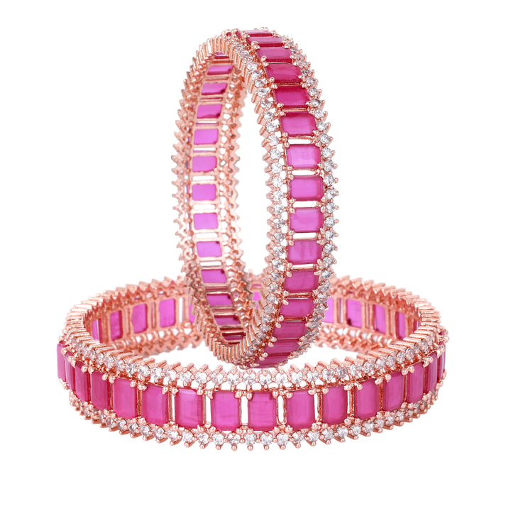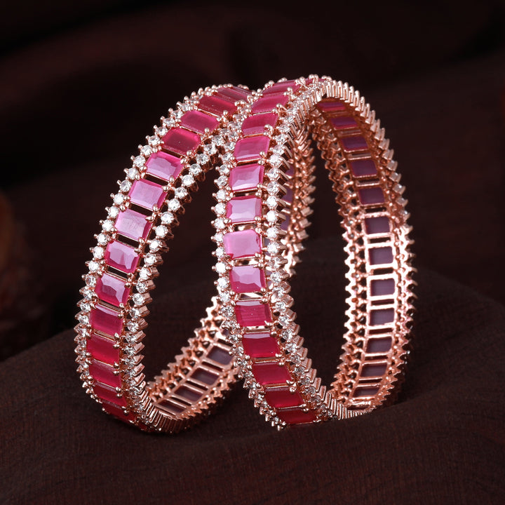 Estele Rosegold Plated Stunning Ruby American Diamond Bangles | Available Sizes 2:4, 2:6 & 2:8| A Stylish Choice for Modern Women
