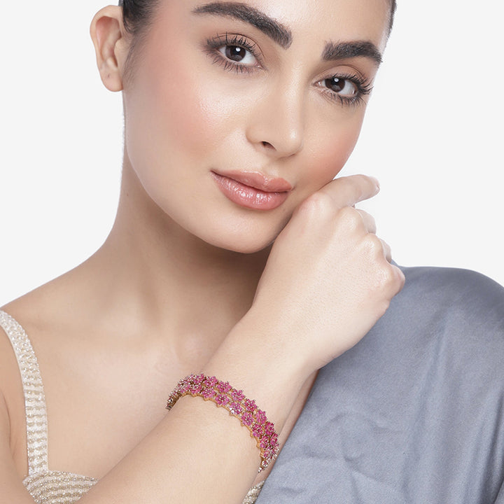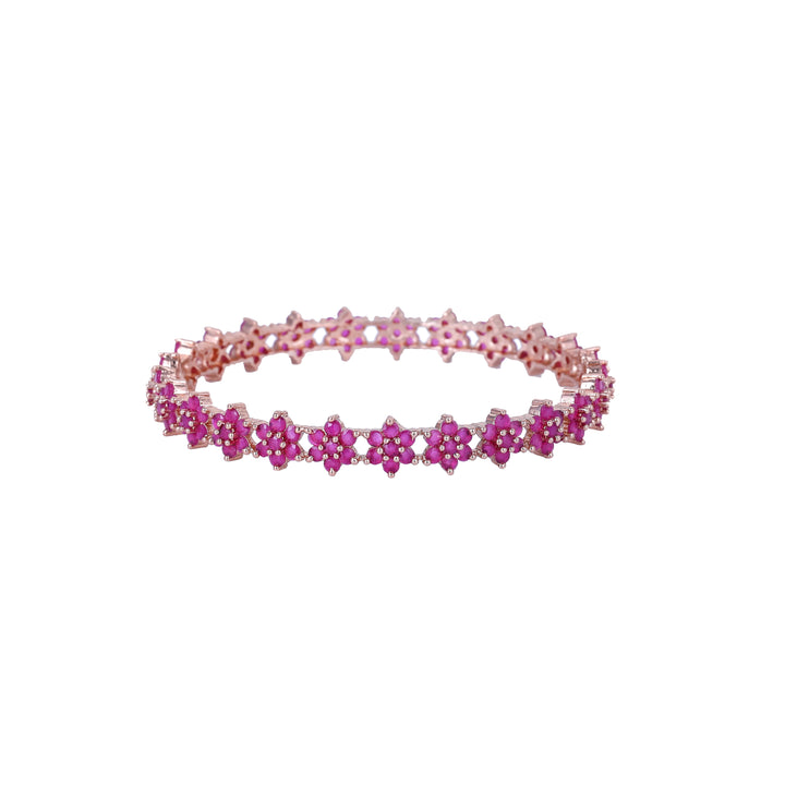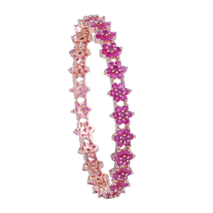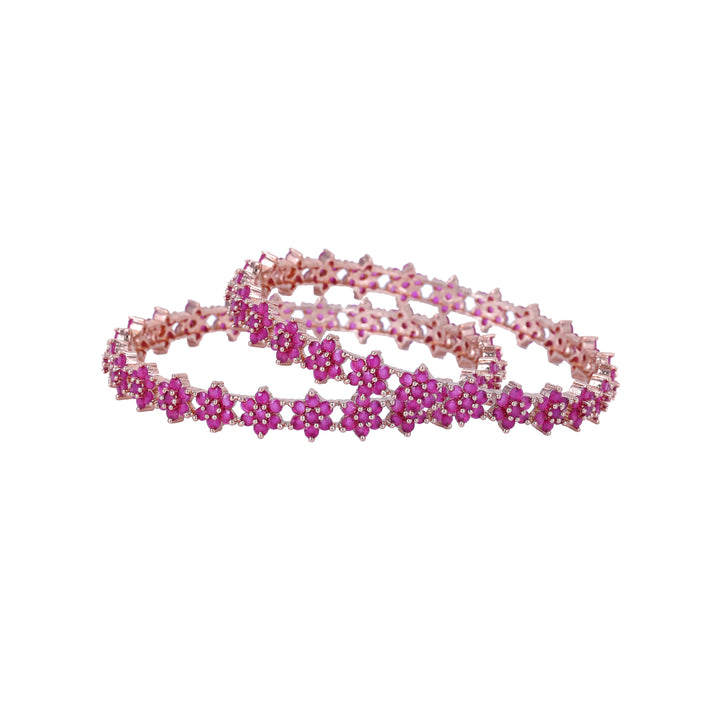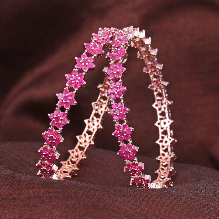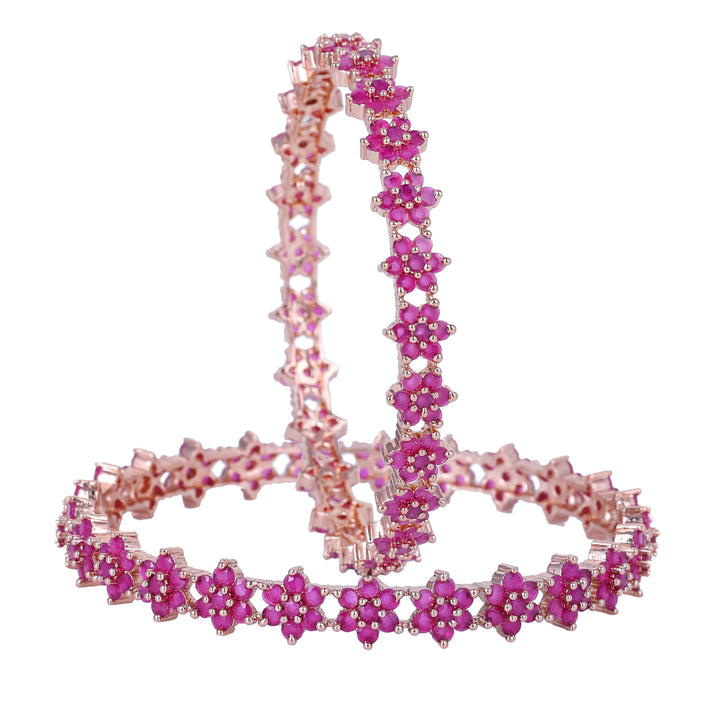 Estele Rosegold Plated Luxurious Floral Motif Ruby American Diamond Bangles | Available in 2:4, 2:6, & 2:8 Sizes |A Sparkling Choice for Womens Classic Look
