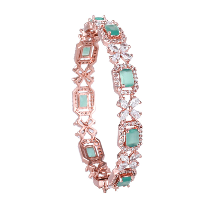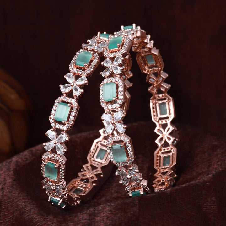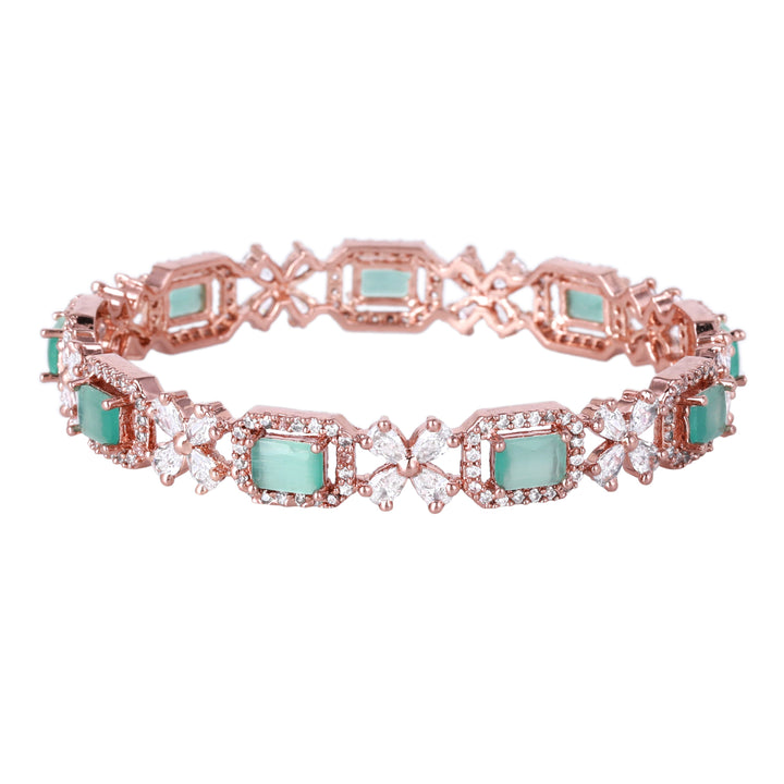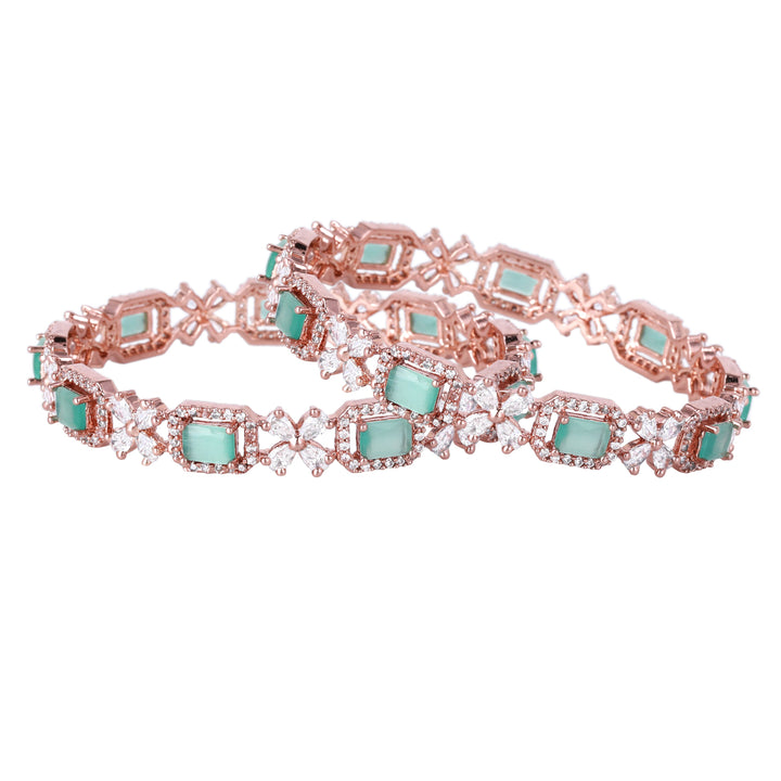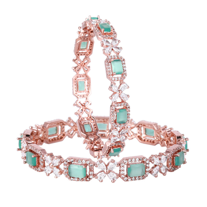 Estele Rosegold Plated Stunning Mint Green American Diamond Bangles|Available in 2:4, 2:6, & 2:8 Sizes|Perfect Blend of Glamour & Elegance for Women