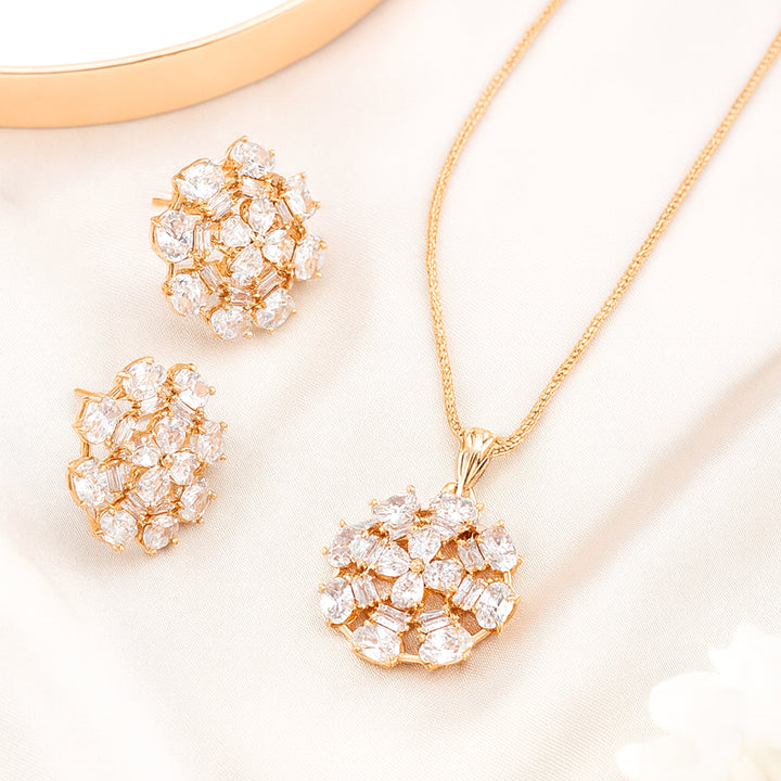Estele Rose Gold Plated CZ Floret Designer Pendant Set for Women