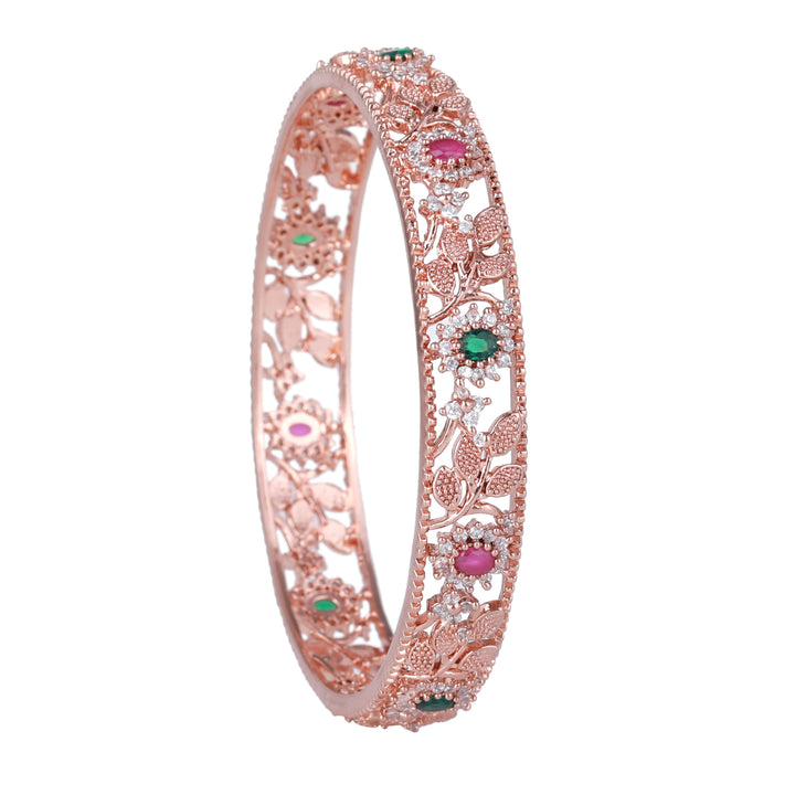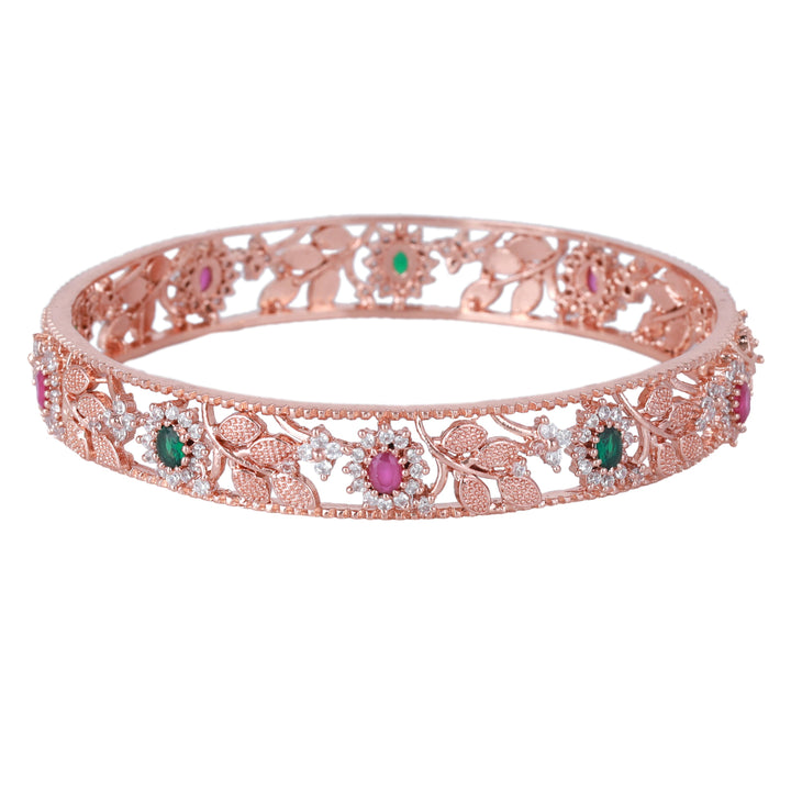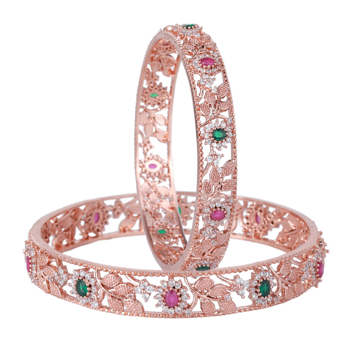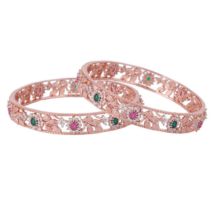 Estele Rosegold-Plated Multi-Color Leaf & Blossom-Design Traditional 2:6 Size Bangles for Women: Timeless Floral Elegance