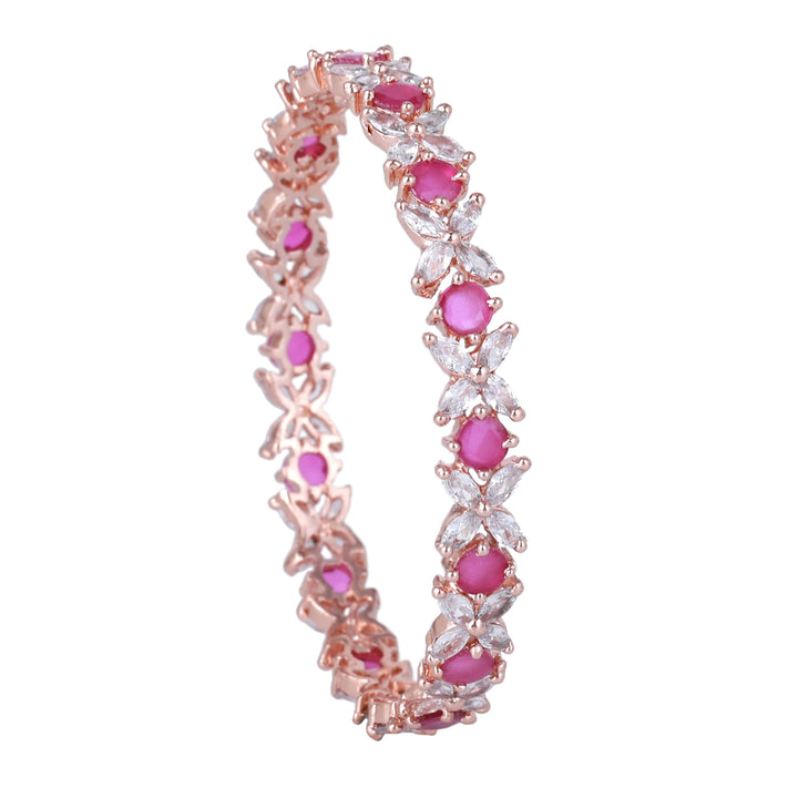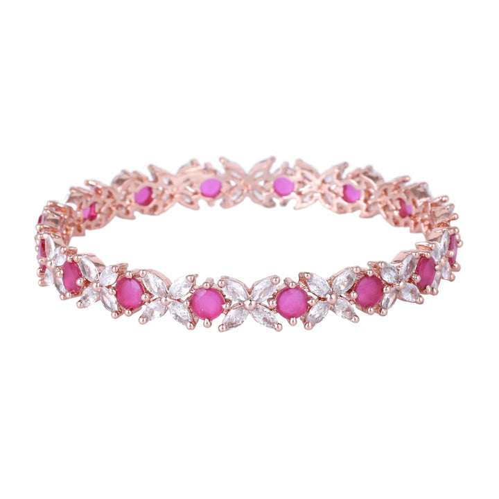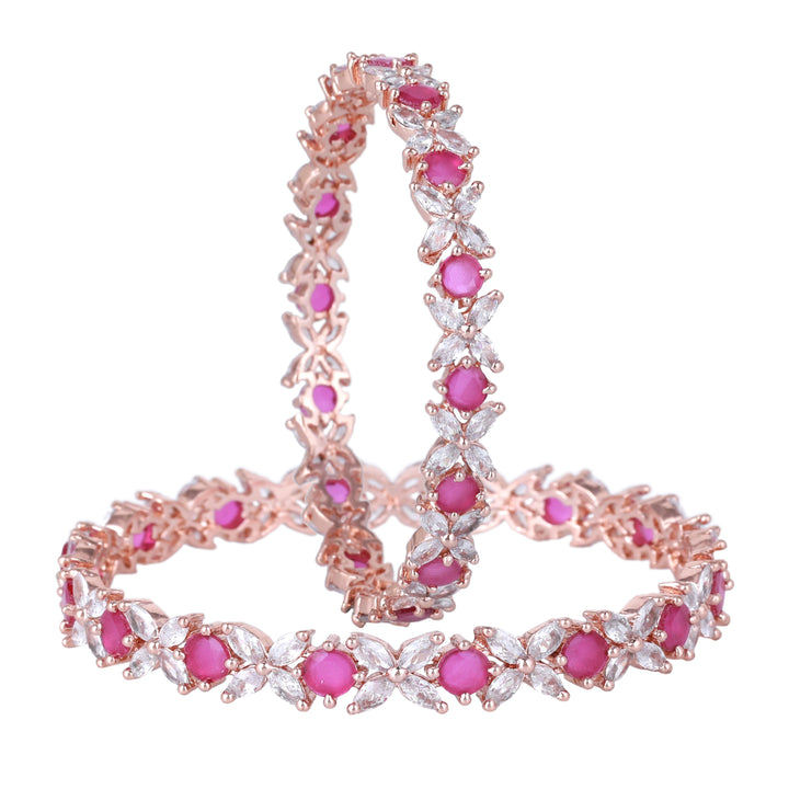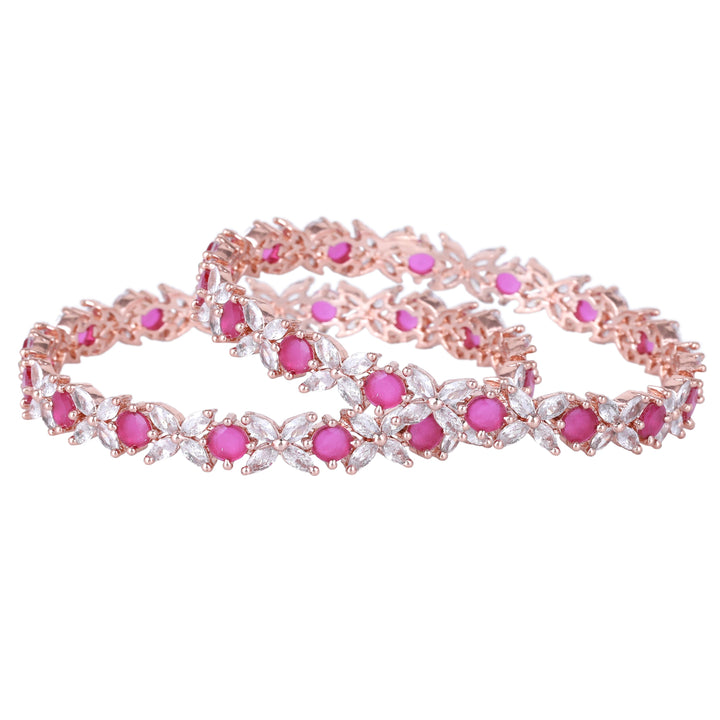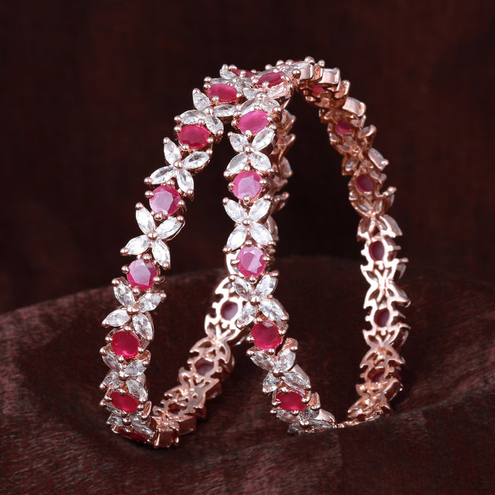Estele Rosegold Plated Ruby American Diamond Gorgeous Floral Bangles| Available in 2:4, 2:6, & 2:8 Sizes | Perfect Fit & Timeless Elegance for Women