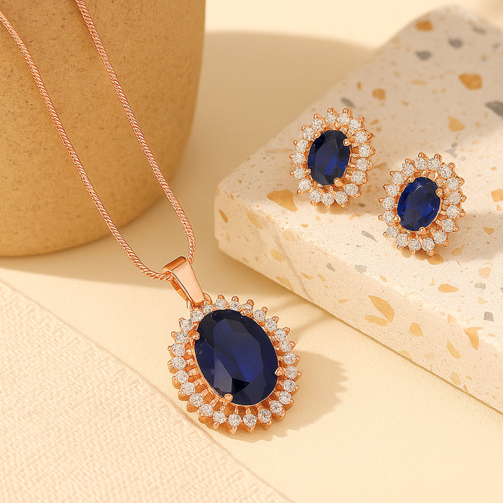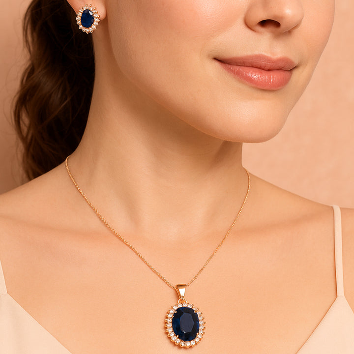 Estele Rosegold Plated CZ Round Designer Pendant Set with Blue Stones for Women