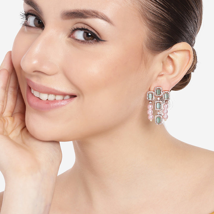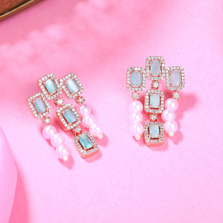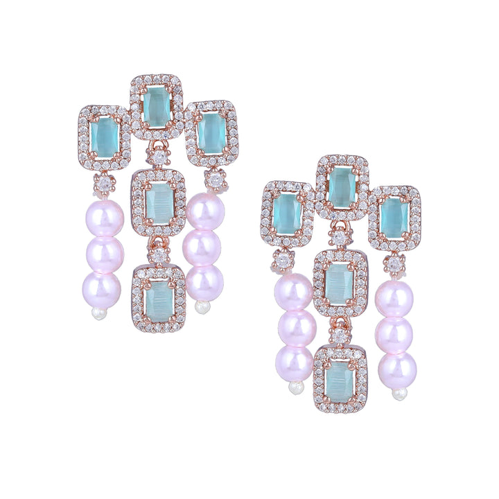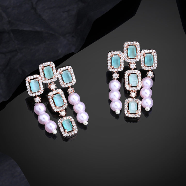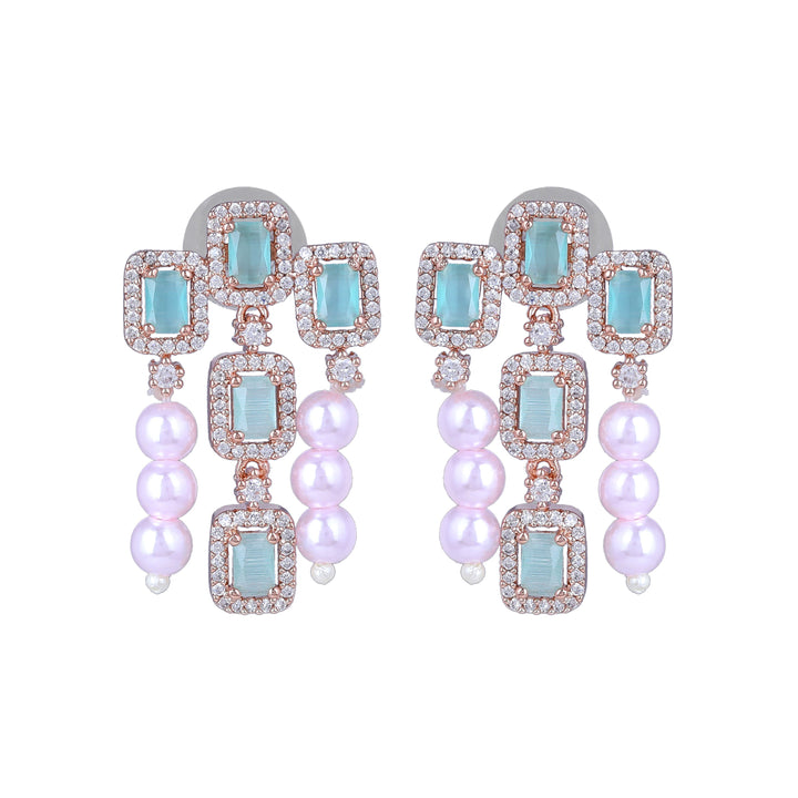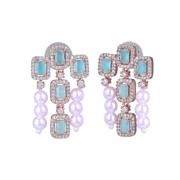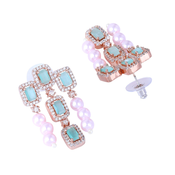Estele Rose Gold Plated CZ Shimmering Earrings with Mint Green Stones & Pearls for Women
