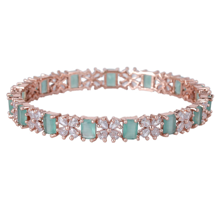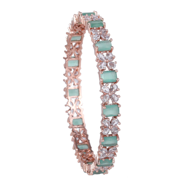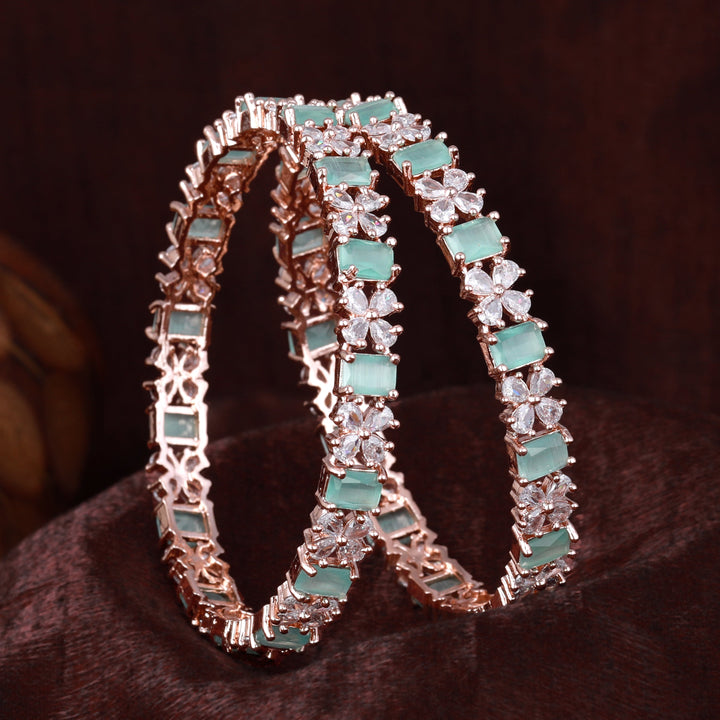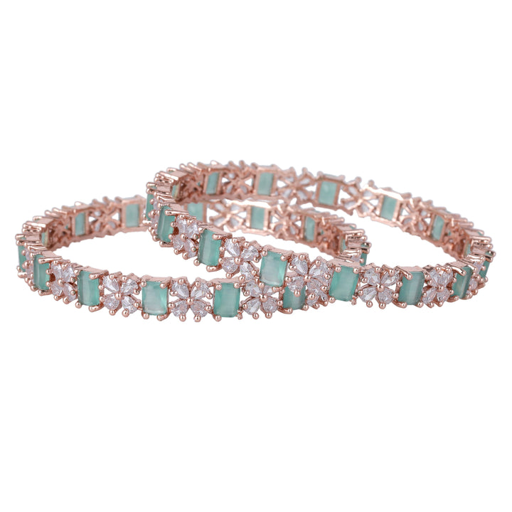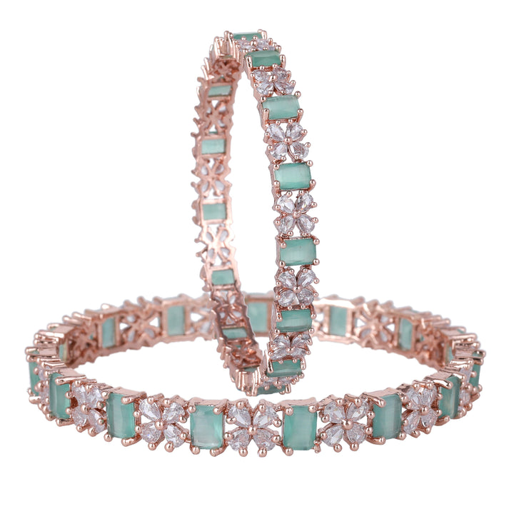 Estele Rosegold Plated Glistening Mint Green American Diamond Bangles| Available in 2:4, 2:6, & 2:8 Sizes| Timeless & Elegant Look for Women