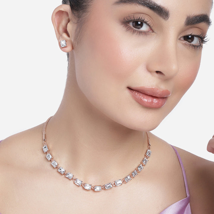 Estele Rosegold Plated Sparkling Necklace Set with Crystals for Women
