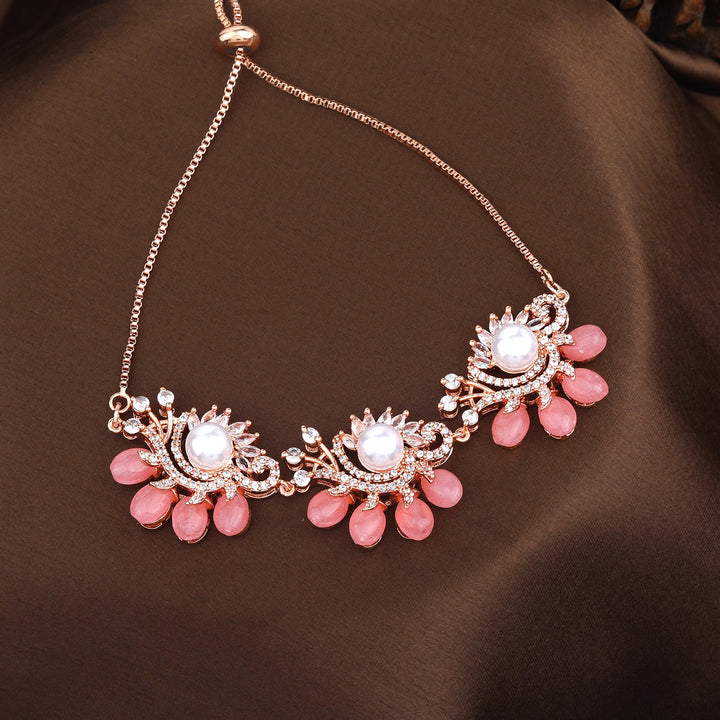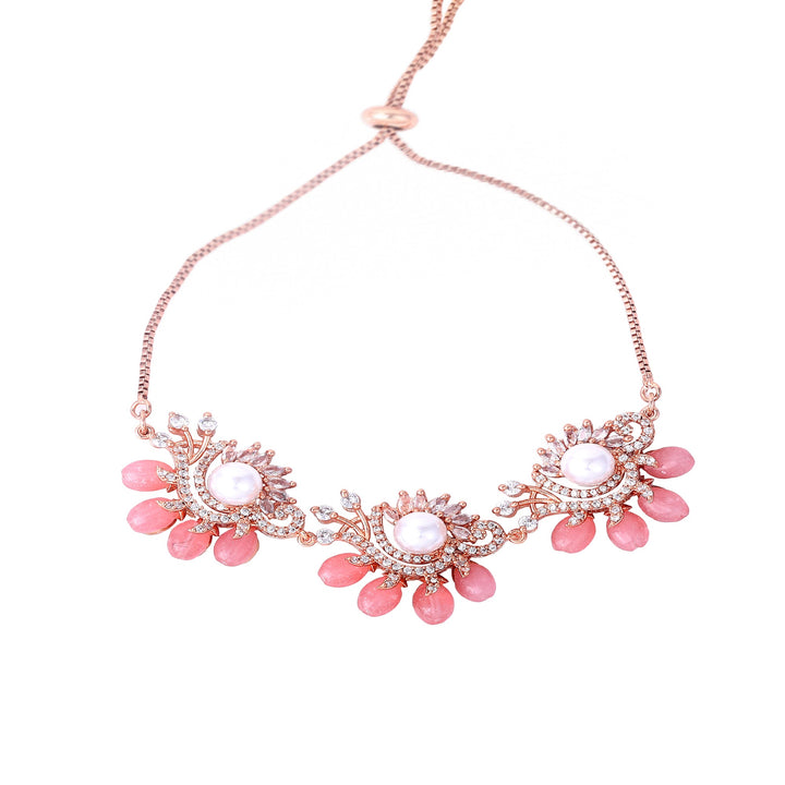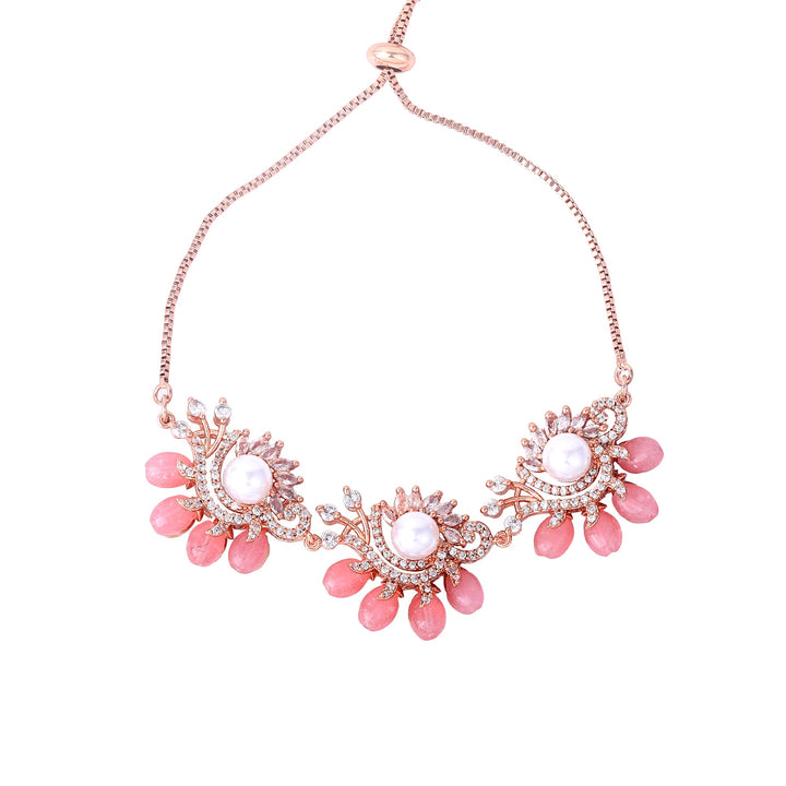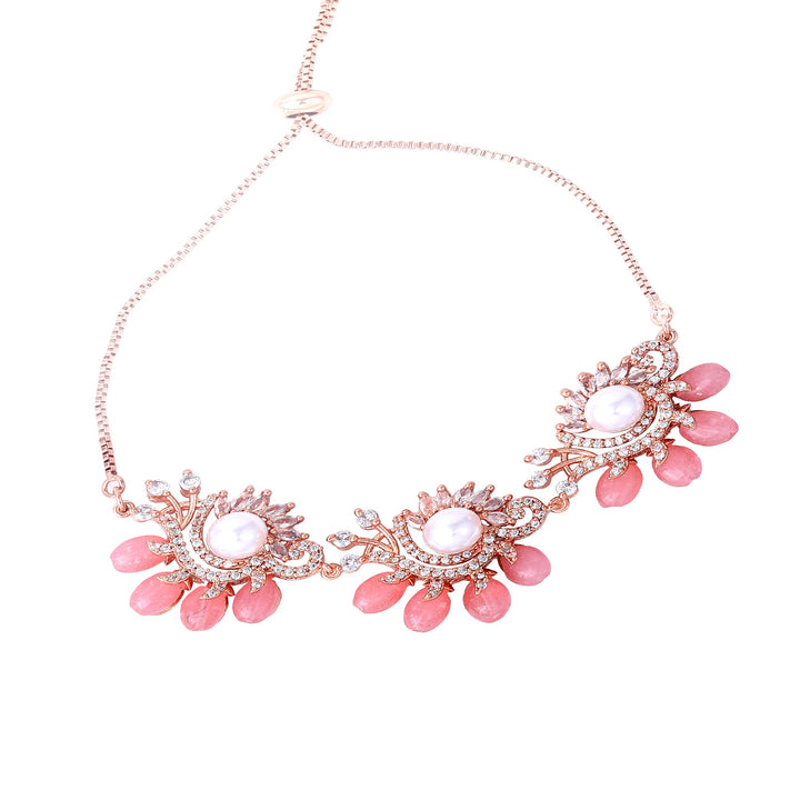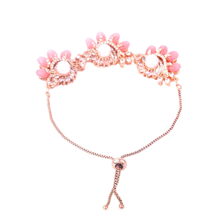 Estele Rosegold Plated Classic Mint Pink Beads Accented Flexible Varya Bracelet|A Graceful Wristlet for Modern Ladies
