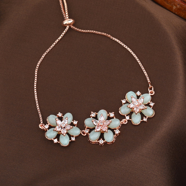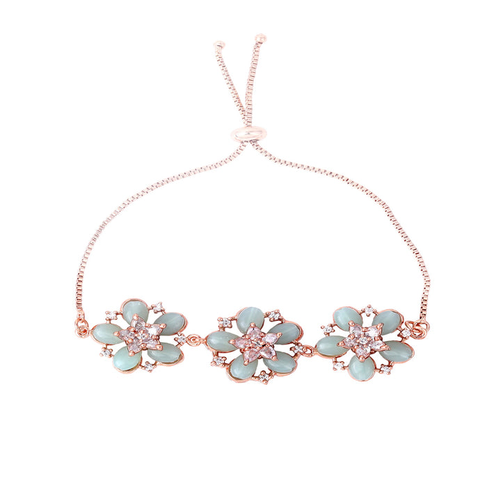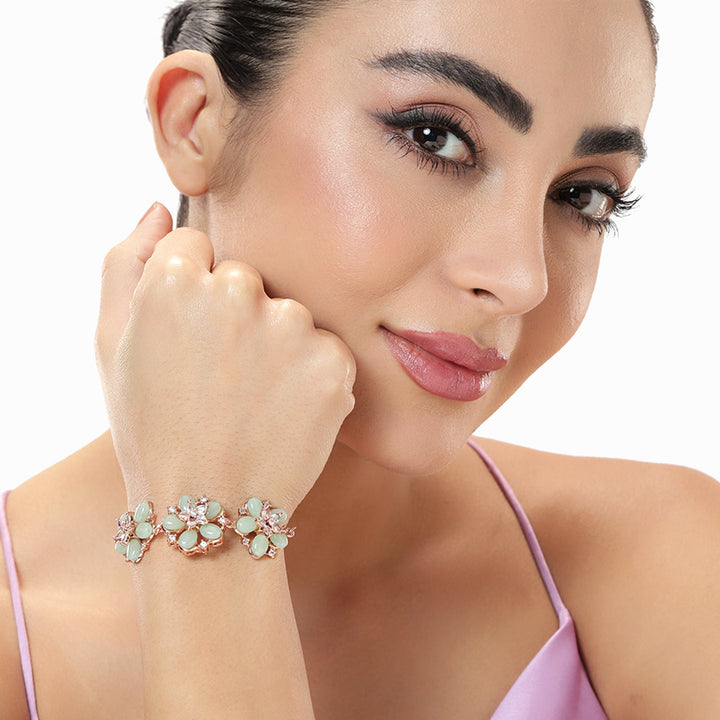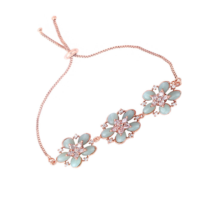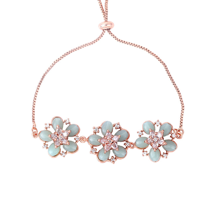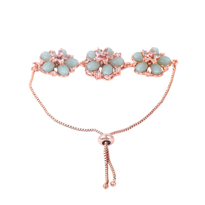 Estele Rosegold Plated Floral-Inspired Mint Green Beaded Adjustable Varya Bracelet|A Graceful Accessory for Modern Women
