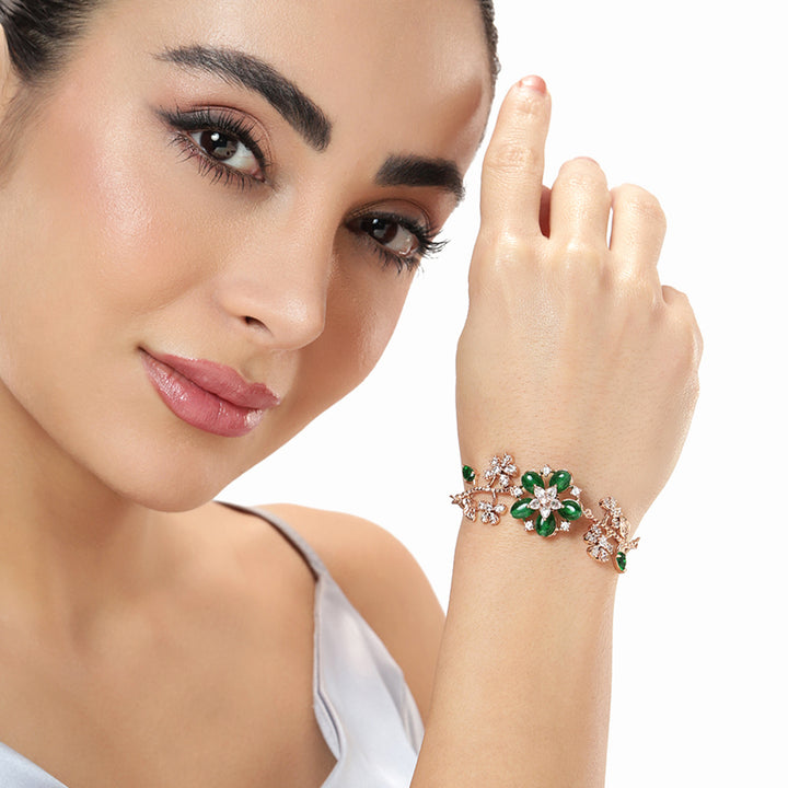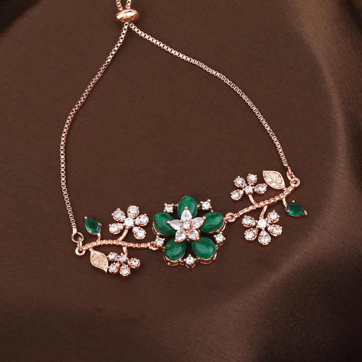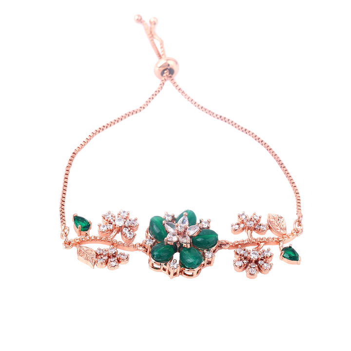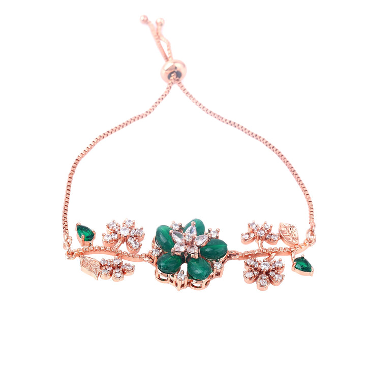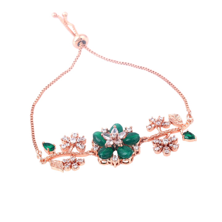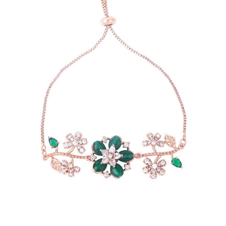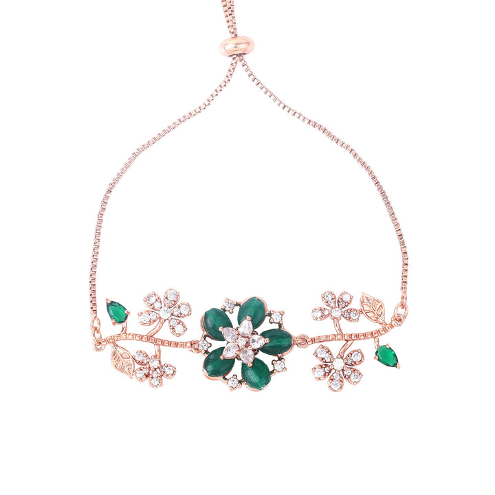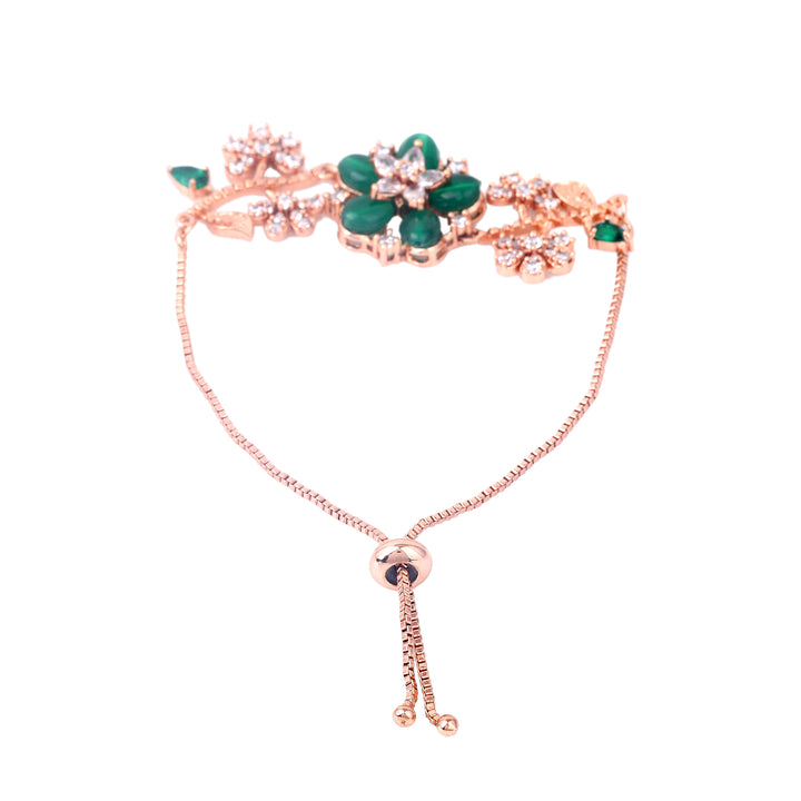 Estele Rosegold Plated Flower-Decorated Green Beaded Adjustable Varya Bracelet|A Graceful Wristlet for Modern Ladies