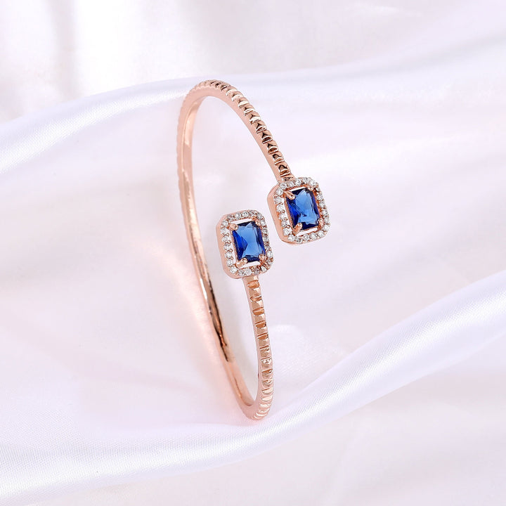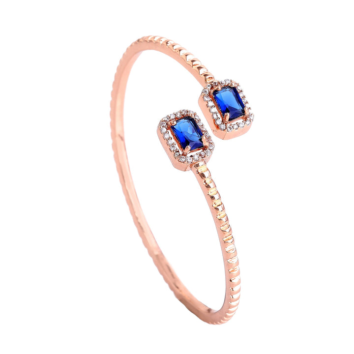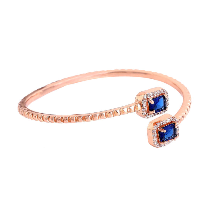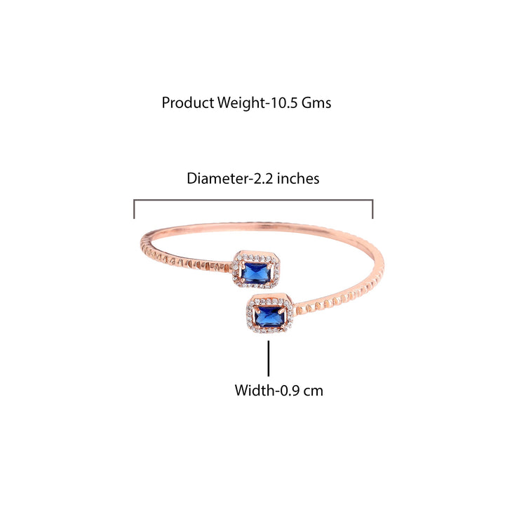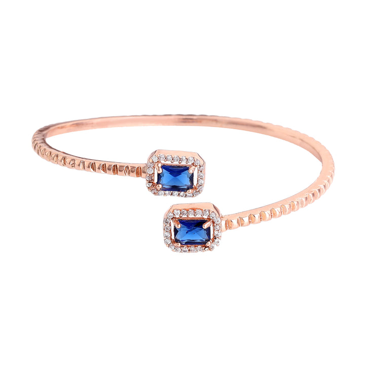 Estele Rosegold Plated Lightweight Graceful Kada Bracelet with Blue Glittering American Diamonds|Stylish Accessory for Women