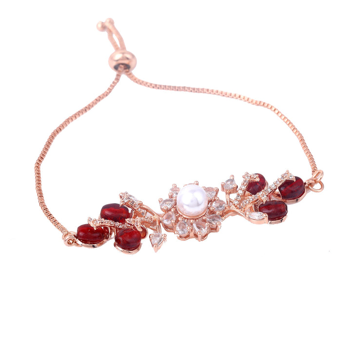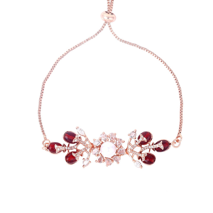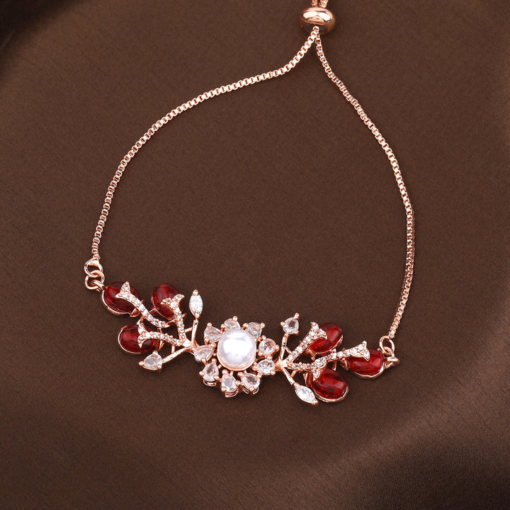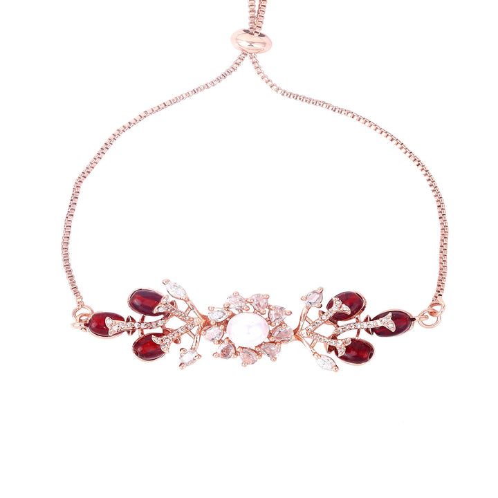 Estele Rosegold Plated Nature-Inspired Leafy Bloom Varya Bracelet with Ruby Beads for Women|A Stylish Accessory for Modern Women