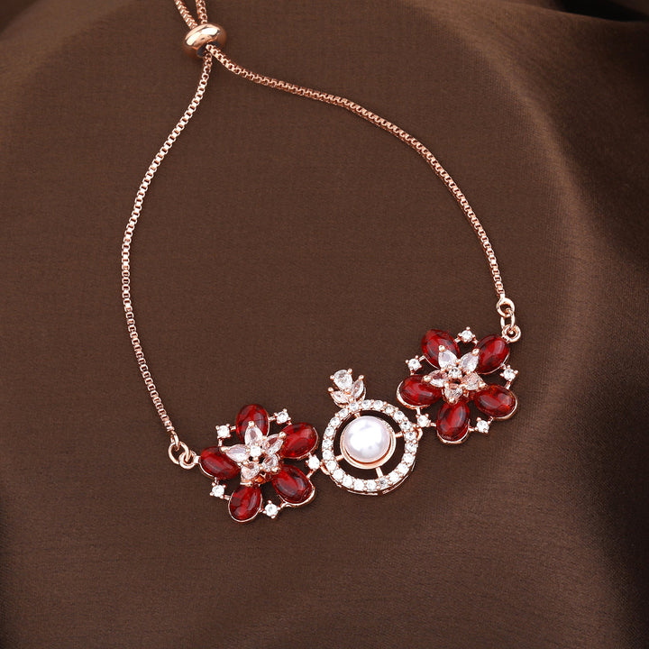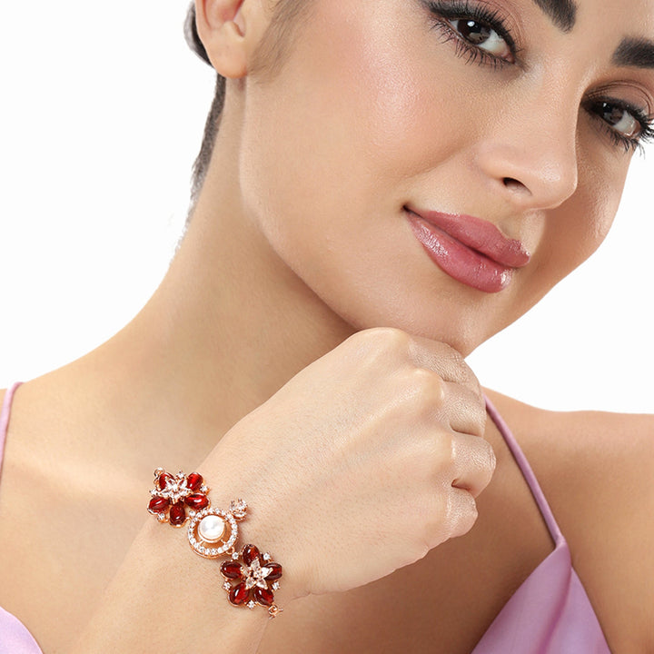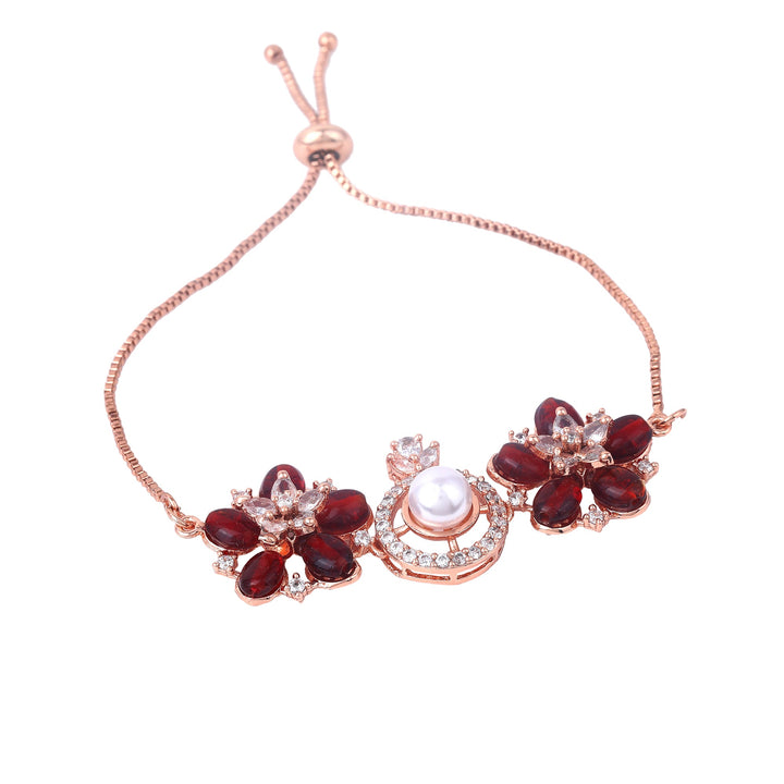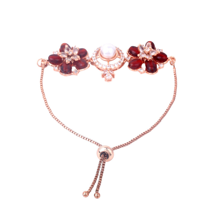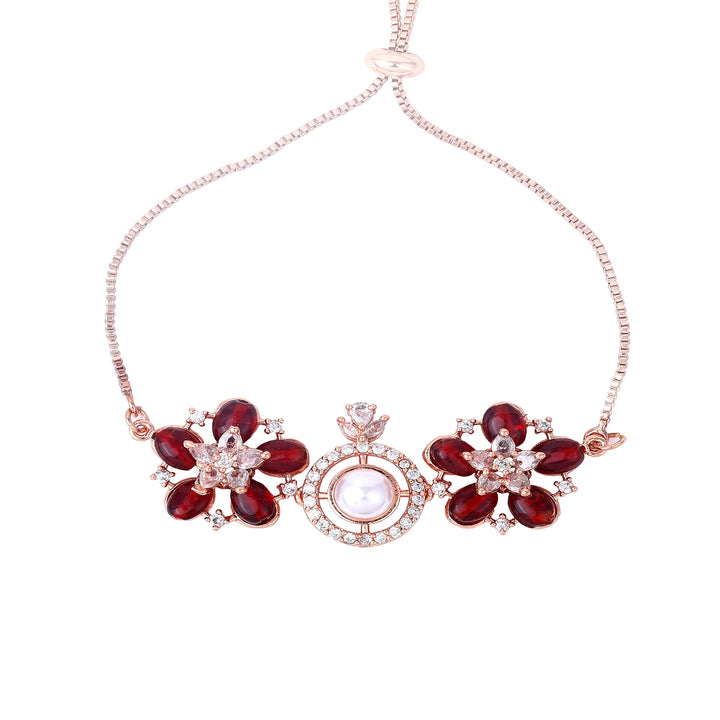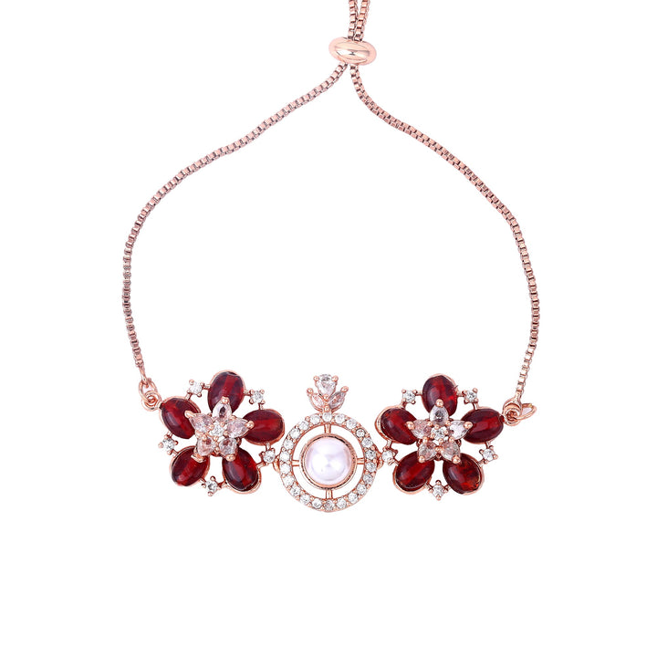 Estele Rosegold Plated Stunning Ruby Beads Enhanced Floral Designer Lightweight Adjustable Varya Bracelet for Women