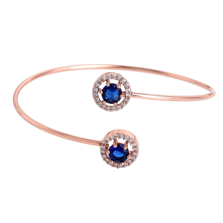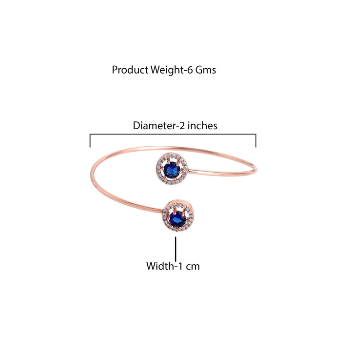 Estele Rosegold Plated Trendy and Comfortable Lightweight Cuff Kada Bracelet with Classic Blue Stones for Girls & Women