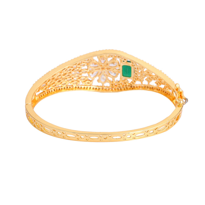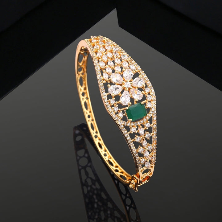 Estele Royal Shine Gold Plated American Diamond Bracelet with Green & White Stones | A Statement of Grandeur & Comfort Fit Elegance