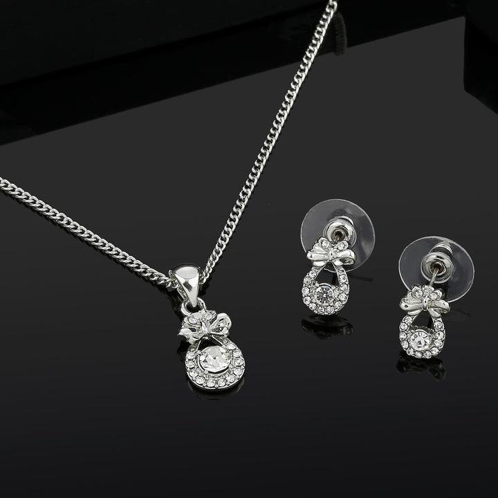 Estele - Rhodium plated Solitaire bow pendant set for Women