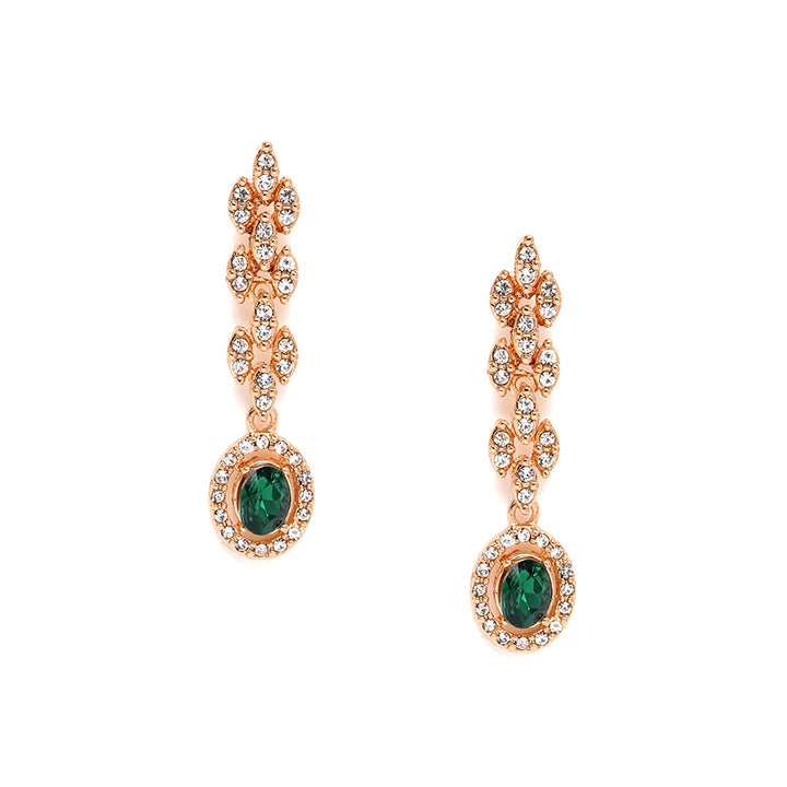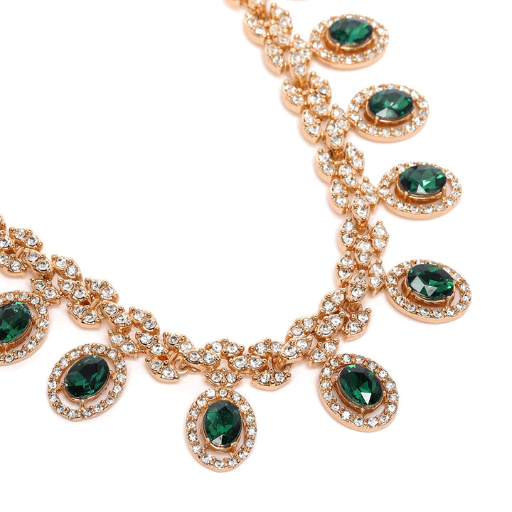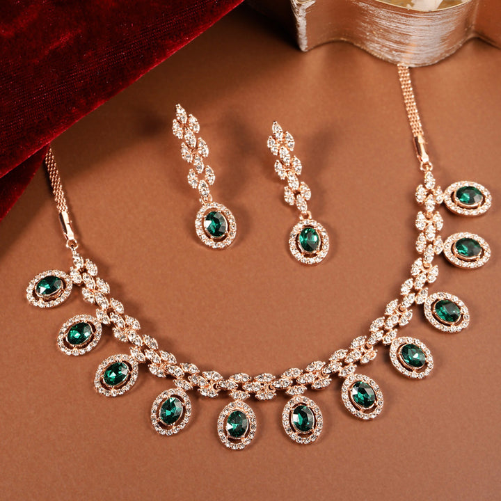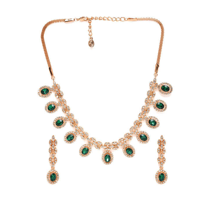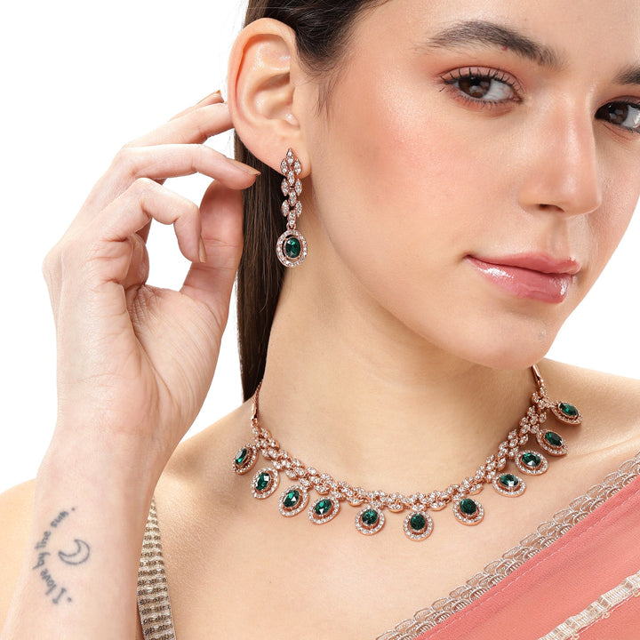 Estele Crystal Blooms Delicate Lightweight Green American Diamond Necklace Set with Sophisticated Rosegold Finish A Perfect Gift of Love